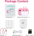 Menu Other Items Feedbacks About Us Contact Us Add To Favorites Instant Camera for Kids Digital Camera for Girls Toddler Camera with Print Paper, 40MP Kids Video Camera Child Selfie Camera Toy Camera Kids Camcorder 2.4 Inch Screen and 32GB TF Card 🎅【40 MEGA PIXELS & 1080P HD VIDEO】 Digital camera for kids has dual cameras, selfie supporting. The front and rear are both 40 mega pixels. kids digital camera with 8X digital zoom that can zoom in to take photos. Child camera comes with 20 funny photos frames. Support date setting. Children digital camera provide playback sound for the videos it records 🎅【NO LNK KIDS INSTANT CAMERA】 Instant camera for kids, comes with 3 print paper rolls for up to 180 pictures. No Ink technology means printing without toner, print paper material is skin-friendly and easy to replace. Instant print camera enables kids get their photos(3.15”x2.2”) in seconds. You can choose only print/only take photos/photo and print 3 options in the settings. The density of printed photos can be adjusted 🎅【2.4 INCH IPS SCREEN & SAFE NON-TOXIC MATERIAL】Kids digital camera with 2.4 inch eye protection screen which can avoid harming your child's eyes. Larger viewing and more realistic colors for a better picture. Toddler camera made of environment-friendly and non-toxic material, durable and safety. kids video camera with strap, children can carry it everywhere 🎅【1000mAh RECHARGEABLE CAMERA & 32G TF CARD】Rechargeable camera for kids, equipped with the built-in 1000mAh rechargeable lithium battery and it can take photos or video for 3 hours. USB cable connect to computer to download pictures and videos. It also comes with a 32G TF card allows to store thousands of photos. No need to worry about running out of storage anymore 🎅【BEST GIFT FOR BOYS AND GIRLS】Kids instant camera suitable for little kids at age 3-14 years old girls and boys holiday/Christmas/birthday gift. The printed black and white photos can be used for DIY by children. Stimulate their imagination and creativity. Instant camera not only record photos at birthday parties or Christmas, but also supports video recording Product Description What in the Package: 1* Kids Instant Camera 3* Print Paper Roll 1* USB Charging Cable 1* Cartoon Lanyard 1* 32GB Memory Card 1* User manual MINIBEAR 2023 Instant Camera for Kids - Best Gift for girls and boys Toddler Camera - Best Birthday Toy Gifts for Kids Material: ABS & Silicone Screen Size: 2.4 inch&IPS Full-view Screen Video resolution: 1080P Photo Resolution: 40MP Battery Capacity: 1000mAh Charging Voltage/Time:DC-5V/2-3hrs Recording Time: 3-3.5 hours MAX Support: Up to 32GB TF Card(32GB TF Card INCLUDED) Size: 4.7x2x3.2inch(L*W*H) Tips: When the screen appears blue stripes and the machine can't turn on/shut down when it crashes, reset the camera with a thin pin(NOT INCLUDED). 40MP Kids Digital Camera Kids instant camera has dual cameras, The front and rear are both 40 mega pixels. In photoing mode, press "◎" button to switch to selfie. Short press the "<>" button to view the photo or video. When viewing photos in the album, you can press the "◎" button to print the photos Time-lapse & 5X Digital Zoom Kids digital camera with 5X digital zoom, The 3/5/10S time-lapse function can be selected in the camera settings. When you are taking a photo or viewing a photo, long press the "left" or "right" buttons to zoom in and out. 2.4 inch eye protection large screen can help kids found more detail of the thing 18 Funny Photo Frames Toddler camera with 18 funny frames to select. When taking pictures, press "left" and "right" button to switch photo frames. If you want to close the frame, you can exit and re-enter the photo mode 1080P Video Recording Kids video camera has 1080P HD video resolution. which can be used as a portable kids camcorder. After enter the video mode, press the shutter button to start recording. It supports self-recording. Long press the "◎" button to switch cameras. Video can be played back on the camera Non-Ink & Non-toxic Print Paper Non-Ink technology means printing without toner, thermal paper material is skin-friendly and it easy to replace. Instant camera enables kids get their photos in 3 seconds. You can turn on or off the "Print after capture" option in the settings. The density of printed photos also can be adjusted DIY Black and White Photo Kids instant camera with 3 print paper rolls for up to 180 pictures. Children can use the coloring tools pens to paint on photos, helps to develop kid's Imagination, curiosity and creativity. Print photo size: 3.15x2.2 inch USB Transfer Instant camera for kids support connect to computer. You could view and transfer your photos and videos by connecting your child camera to computer via USB cable. Digital camera can be connected to a computer for charging. We recommend that you use a 5V-1A adapter. You can also connect to a power bank to charge when traveling Lightweight & Portable Child Camera Digital kids camera with lanyard. Toy camera made of non-toxic safe material, lightweight and hand-size is easy for kids to hold on. Kids could hang it on the neck and carry it everywhere. 2 Puzzle Games & Music Player This is not only an instant camera for kids, but also a kids' MP3 player. With the built-in music player, you can download music to the "MP3" folder in the memory card, and children can listen to music on the camera at any time. Children camera with simple puzzle games, keep kids away from TV and smart phone, and inspire kids patience and intelligence. Best educational kids toys for for boys and girls Item Specification Age Range Description Kid Battery Cell Type Lithium Polymer Has Color Screen Yes Are Batteries Included Yes Item Weight 0.42 Kilograms Maximum Webcam Image Resolution 40 MP Dots Per Screen 230400 Memory Storage Capacity 32 GB Focus Type Auto Focus Focus Features Autofocus Auto Focus Technology Contrast Detection Flash Memory Supported Size Maximum 32 GB Is E