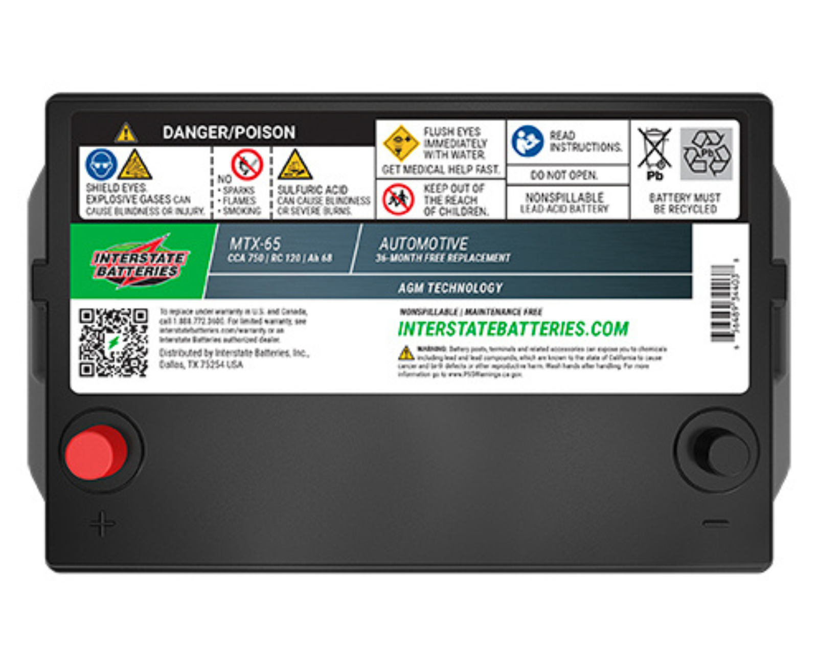 AUTOMOTIVE PURE LEAD AGM: Interstate's MTX AGM design packs more lead into the battery, giving you the longest life possible for your start-stop vehicle PREMIUM BATTERY PERFORMANCE: Interstate’s MTX absorbed glass-mat (AGM) battery will meet or exceed your car’s starting requirements while delivering premium battery performance to power all your accessories and plug-ins, making it Outrageously Dependable 2X-3X MORE BATTERY LIFE: Expected service life is 2X more than a conventional lead alloy AGM battery, and 3X longer life than conventional flooded battery. This design packs more lead into the car battery, giving you the longest life possible while the battery itself is spill-proof and vibration resistant MAINTENANCE-FREE AND SPILL-PROOF: Rechargeable, maintenance-free, and spill-proof because of the AGM and VRLA (valve regulated) technology that eliminates spills and overpressure. The MTX is an absorbed glass-mat battery using a revolutionary design that suspends electrolyte in fiberglass mats instead of letting free-flowing liquid in a battery cell MOST TRUSTWORTHY POWER SOURCE: For 70+ years, Interstate Batteries purpose has been to deliver the most trustworthy source of power to the world every day, and have become the preferred battery among automotive stores and professionals