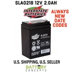 SLA0218 12V 2Ah INTERSTATE BATTERIES - POWER PATROL Sealed Lead Acid Battery Battery Concepts is an Authorized Dealer for Interstate Batteries Power your performance with the right choice in rechargeable Sealed Lead Acid (SLA) batteries for your personal and business applications. Get the battery you need when you need it with the Interstate Advantage? battery expertise, logistics solutions and local service to keep your bottom line thriving. 12V Industry-leading design with VRLA technology Nonspillable 7-Point Quality Assurance - tested for proven performance Maintenance-Free UL Recognized Product Details: Model Terminal V Ah Length Width Height Qty Weight SLA0218 F1 12 2 2.76” 1.89” 3.86” 1 1.76lbs. The SLA0218 Battery is 100% compatible with your OEM battery! Purchase your SLA0218 12V 2AH Sealed Lead Acid battery with complete confidence! You get a superior, long life battery and the best price on the market. The battery is in stock and will SHIP SAME DAY . We supply only brand new, factory fresh, high quality batteries! If you need more help purchasing your Interstate Batteries POWER PATROL SLA0218 replacement SLA battery, please call our customer service department or email us. Our experienced and knowledgeable staff is ready to assist you. MPN: SLA0218 UPC: 656489246264 Chemistry: Sealed Lead Acid (AGM) Specifications for Interstate Batteries SLA0218 Replacement Battery GENERAL CHARACTERISTICS Amp Hours 2 Voltage 12 Termination .187" Faston Spades Chemistry Sealed Lead Acid DIMENSIONS Length 2.76 in Width 1.89 in Height 3.86 in Weight 1.76 lbs PRODUCT INFORMATION Product Code SLA0218 Sales Unit Each UPC 656489246264
