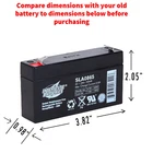 SLA0865 INTERSTATE BATTERIES - POWER PATROL Sealed Lead Acid Battery Battery Concepts is an Authorized Dealer for Interstate Batteries FACTORY FRESH, meaning we receive Brand NEW batteries every month from the manufacturer and when an order is placed we SHIP SAME DAY! Our stock of batteries never sit more than 1 month on the shelf. Power your performance with the right choice in rechargeable Sealed Lead Acid (SLA) batteries for your personal and business applications. Get the battery you need when you need it with the Interstate Advantage? battery expertise, logistics solutions and local service to keep your bottom line thriving. Product Details: Model Terminal V Ah Length Width Height Qty Weight SLA0865 F1 6 1.2 3.82" 0.98" 2.05" 1 0.66 lbs. The SLA0865 Battery is 100% compatible with your OEM battery! Purchase your 6V 1.2AH Sealed Lead Acid battery with complete confidence! You get a superior, long life battery and the best price on the market. The battery is in stock and will SHIP SAME DAY . We supply only brand new, factory fresh, high quality batteries! If you need more help purchasing your Interstate Batteries SLA0865 replacement SLA battery, please call our customer service department or email us. Our experienced and knowledgeable staff is ready to assist you. General Purpose SLA Batteries Our extensive general purpose SLA line is designed for the best balance, charge/discharge tolerance, capacity utilization and good depth of discharge (DOD). It delivers optimized performance for a wide array of cycling and backup applications: Electric gate systems Fire/security systems Garage doors Remote lighting COMPATIBILITY Access Battery SLA613 Acme Medical 1500 SCALE Acme Medical 2500 SCALE Acme Medical 2510 SCALE Acme Medical 3903 SCALE Acme Medical 4000 SCALE Acme Medical 4500 SCALE Acme Medical 500 SCALE Acme Medical 5000 SCALE Acme Medical 557 Acme Medical 55762 Acme Medical 56062 Acme Medical 7000 SCALE Acme Medical 7300 SCALE Acme Medical 7305 SCALE Acme Medical 7400 SCALE Ademco/Adi CA-60914 Ademco/Adi UZ-NP126 Ajc AJC-C1.2S Ajc AJC-C1.3S Ajc AJC-C1.3S-A-1-154477 Alphasource AS00305 Alphasource AS00802 Any Battery 1213 Armstrong Medical AD900 Axon Systems 930 Axon Systems BLOOD PRESSURE MONITOR Axon Systems OSCILLOMATE B & B Battery BP1.2-6 Battery Center BC612 Battery Center CM612 Bci International 3040 Bci International 3040G Bci International 3045 Bci International 3100 Bci International 3202 Bci International 3302 Bci International 3304 Bci International 515 Bci International 67100 Bci International 8604P Bci International AUTOCOOR Bci International MUI 5000 Biologic BIOFEEDBACK Cardiac Resuscitator AE7000 COMPACT SUCTION UNIT Cas Medical 2001 Cas Medical 820 Cas Medical 901 Cas Medical 915 Cas Medical 920 Cas Medical 930 Cas Medical 930N Clockmate Batteries PSLA0601.2 Consent GS6V1.3AH Criticare Systems 1040 PULSE OXIMETER Criticare Systems 503 PRINTER Criticare Systems 503 PULSE OXIMETER Criticare Systems 503S Criticare Systems 503SP02T PULSE OXIMETER Criticare Systems 5040 PULSE OXIMETER Criticare Systems PONI PULSE OXIMETER Critikon 503 Critikon 504 Dantona LEAD-6-1.2 Datex-Ohmeda AS3 Detex Alarms BE960 Detex Alarms EA2500F Detex Alarms EA2500S Dukane MASTER CLOCK Elan NPK1.26V Elan NPKA26V Elk Batteries ELK-0610 Elk Batteries ELK-0613 Els EDS612 Elsar 112 Elsar 23050 Empire Scientific NP126 Exitronix EX6V1.2A Federal Signal INFORMER Fire Lite 6100 General Electric / Ge 46-294231P5 General Electric / Ge 46294231P5 General Electric / Ge 5X General Electric / Ge 60-914 General Electric / Ge SIMON 3 Gs Portalac PE126R Gs Portalac PE6V1.2 Gs Portalac PE6V1.3F1 Hitachi HP1.2-6 Ibm 3624 TELLER Interalia Digital LCR1.26 Interalia Digital NP1212 Interstate Batteries ASLA0865 Ird Mechanalysis 885 Jasco RB612 Johnson Controls GC612 Johnson Controls JC612 Jolt Batteries SA613 Kobe HP1.26 Kung Long WP1.3-6 Ladd Steritak J7000 INTER CRANIAL PRESSURE MONITOR Leoch DJW6-1.2 Lichpower DJW6-12 Life Systems 0652001 Life Systems E101 COMMUNICATOR Life Systems E101A COMMUNICATOR Life Systems H101 Life Systems H101A Life Systems H101B Lintronics LCR6V1.3P Lintronics MX06012 Lintronics NP126 Marquette Medical 711 Marquette Medical BP711 Marquette Medical EMSBP Marquette Medical SBP 711 Masimo RADICAL 8 Medela Baar SYMPHONY Medela Baar SYMPHONY 2.0 Medi-Man 622000 PATIENT LIFT Mk Battery BMED00802 Mule 6GC004A Narco Air Shields OC681 OXYCARE OXYGEN MONITOR Ncr 3450 Newmax FNC612 North Supply 782322 North Supply 782361 Novametrix 444201 Novametrix 807 TRANSCUTANEOUS O2 MONITOR Novametrix 811 CO2 MONITOR Novametrix 840 CO2 MONITOR Nuclear Associates 05441 Odonnell Batteries NO126 Ohio Medical Products 3700 PRINTER Ohio Medical Products 9000 SYRINGE PUMP Ohmeda 3700 Ohmeda 9000 Oreck ZIPVAC ULTRA Pace 530 VITALMAX PULSE OXIMETER Panasonic LCR061R3P Panasonic LCR061R3PU Panasonic LCR6V1.3P Parks Medical 611 Parks Medical 809 Parks Medical 811L Parks Medical 811S Parks Medical 909L Parks Medical 911 Parks Medical 911L Parks Medical 911S Parks Medical 915S Parks Medical 922 Powercell PC613 Powersonic PS-612 Powertron NPH136 Powertron PE126RF1 Powertron PE6V12RF1 Powertron PE6V1F1 Protection One BT0004N Protocol Systems Inc 240 Puritan-Bennett 240 MONITOR Quantum BANTAM Quantum ES126 R&d Batteries 5369 R&d Batteries 5469 R&d Batteries 5639 R&d Batteries 5746 R&d Batteries 5852 Radiometer America OXY-1 Radiometer America OXY-13 Radiometer America OXY-3 Replacement Battery for Werker WKA6-13F Rhino Batteries SLA1.2-6 Rostec RC6-1.3 Sbs S612 Scale Tronix 2500 BED SCALE Sentry Lite PM612 Sheng Yang Power SY612 Sima SB613 Solo Light 880514 Sonnenschein 07190182 Sonnenschein A206/1.1SU Sonnenschein A206/1.2S Sonnenschein A206/1.2U Sonnenschein A306/1.1S Sonnenschein A506/1.2S Sonnenschein CR61.3 Sonnenschein M84001A5060012S Sonnenschein NGA50601D2HSOSA Sscor AD2000 PULSE OXIMETER Sscor AD900 PULSE OXIMETER Sscor PULSE OXIMETER Star Trac 5100 PRO STEPPER Star Trac 800-3102 Sunnyway SW612 Sunrise Medical SLING 