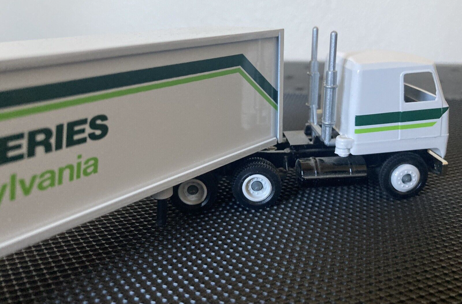 Thank you for viewing this listing For Sale : Winross Mack Truck with Stacks Interstate Batteries of Southern Pennsylvania This is a Winross Mack tractor trailer/semi with a multi-color paint job, hauling an Interstate Batteries of Southern Pennsylvania. box trailer The vehicle is diecast and has a scale of 1:64. It was manufactured in the United States and is part of the Automobile character family. The truck comes with stacks and is perfect for collectors or fans of tractor trailers/semis. This item falls under the categories of Contemporary Manufacture, Cars, Trucks & Vans, Diecast & Toy Vehicles, and Toys & Hobbies. Please see and use the attached pictures to assist with your considerations As always competitive offers will be considered Shipping will be fast and safe with USPS mail Thank you