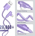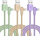 [Apple MFi Certified]:Manufactured with Apple chips, the Lightning cable fully supports iOS versions and all future updates. They are certified for high quality, tensile strength, fast charging, and can support up to 2.4A fast charging and 480 Mbps transfer speed, ensuring full charge and sync compatibility with your iPhone devices. [Superior Durability]:These iPhone charging Cords are charge safe and extremely durable, tested 20000+ bending life. Premium nylon braided cables guarantee the durability and flexibility of the iPhone charging cables. [Innovative 90 Degree Design]:lightning charger cables for iPhone designed for the game, Unique Right Angle Design and 90 Degree L type design makes it more convenient when you playing the game and charging at the same time. [Wide Compatibility]:iPhone charger cable Compatible with iPhone 14/ 14 Plus/ 14 Pro/ 14 Pro Max/ 13/13 Pro/13 Pro Max/12 /12 Pro/ 12 Pro Max/ 12 Mini/ 11/ 11 Pro/11 Pro Pax/XR / XS / XS Max / X /10/ 8 / 8 Plus /7 / 7 Plus/6s Plus / 6s / 6 Plus / 6/5s / 5c / 5 / SE/ SE 2020/SE2022, iPad Pro 10.5-inch (2017)/ iPad Pro 12.9-inch (2015)/ iPad Pro 12.9-inch (2017)/ iPad Pro 9.7-inch (2016), iPad 5th gen/ 6th gen/ 9th gen, iPad Air / Air 2, iPad mini/ mini 2 / mini 3 / mini 4/ mini 5 and more [What You Get]:3-Pack 6ft Nylon Braided 90 Degree iPhone Charger Cables (Green/Gold/Purple)We have 12-month Service after-sale service to prove the importance we place on quality. If you have any questions, don't hesitate to contact us. Our service team will reply you with satisfied solution within 24 hours. Product Description MFi iPhone Charger - Perfect Compatibility −iPhone 14pro Max / 14 pro / 14 / 14 Plus −iPhone 13Pro Max / 13Pro / 13 / 13mini −iPhone 12Pro Max / 12Pro / 12 / 12mini −iPhone 11 / Pro / Max / iPhone Xs /Max / XR / X / 8 / 8 Plus −iPhone 7 / 7 Plus / 6s Plus / 6s / 6 Plus −iPhone 5s / 5c / 5 / SE −iPad Pro / iPad Air / Air 2 −iPad mini 2 / mini 3 / mini 4 −iPad 4th gen −and more 90 Degree iPhone charger 6 ft 3-pack--Excellent Charging you can always rely on Package include items: 1*6FT 90 Degree Nylon Braided iPhone Charger Cable - gold 1*6FT 90 Degree Nylon Braided iPhone Charger Cord - green 1*6FT 90 Degree Nylon Braided iPhone Charging Cable - purple High quality nylon braided iPhone cable Designed with an ultra-durable High quality spring and seamlessly molded joints for superior resistance to breakage. With 20000+ bend lifespan, the durable, tangle-free charger cables withstand a variety of everyday connection needs and long-term use. Strong enough to withstands yanking twisting stretching, or dropping, flexible and pleasant to touch and use. Fast Charge & Data Transfer Internal high-quality four-core copper wires help to reduce cord resistance, Supports maximum 2.4amp current and 480Mbps transfer speeds for your devices in 100% safe case. MFI Lightning Cable Original 8 Pin connector, each cable contains an authorization chip issued to ensure 100% compatibility with iPhone. Built with terminal and smart chip. Enjoy fast data transfer, syncing and charging. connector with a lightning end, ensured safe charging for your devices. Right Angle iPhone Charger Cable - Enjoy Gaming Time Right Angle lightning cable provide carefree gaming experience, It is very convenient to charge the mobile phone when playing games and watching movies. The data cable will not press your hand, let you experience your comfortable feel, reduce the pressure on the finger, improve the sensitivity, avoids bending and breaking the data cable, and extends the service life. 6FT super long iPhone Cable, wear-resistant and free of tangles, allowing you to charge freely in the bedroom, office or even the back seat of the car.