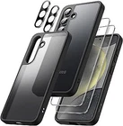 JETech 5 in 1 Matte Case for Samsung Galaxy S24 5G with 2-Pack Screen Protector and Camera Lens Protector| Translucent Back Protective Phone Cover| Tempered Glass Film (Black)