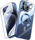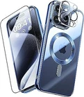 JUESHITUO Magnetic Titanium for iPhone 15 Pro Max Case[Screen Protector & Camera Lens Protector][Not-Yellowing][Strongest N56 Magnets][Military Grade Drop Protection]|6.7inch|Blue Titanium