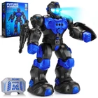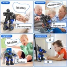 【BRILLIANT GIFT IDEA FOR KIDS】Robots for kids 3+ have a cooler appearance and larger size, more taller than most robot toys. After turning it on, the LED eyes will light up automatically, and then start the demonstration: including dance/music/story/science popularization/patrol/5 machine language learning, etc. Kids will love this creative gift 【REMOTE CONTROL & GESTURE SENSING】The remote control robot can be operated by a 2.4GHz RC and the control distance can reach up to 20 feet (without obstacles). There is a built-in sensor receiver in the chest area, which can be controlled by gesture sensing to turn left/right, slide or walk fast forward and backward, and can automatically avoid obstacles, which is very suitable for children to operate 【INTELLIGENT PROGRAMMABLE】The robot toy has a one-button programming function, children can use their imagination to program up to about 50 movements, and even can create a set of complete and particular dance movements. As a tool for children's enlightenment, robot for kids inject more potential into childhood, which can exercise children's logical thinking, creativity, and brain coordination 【USB RECHARGEABLE】The kid's robot has a built-in rechargeable battery and can be directly connected to a power bank, plug, computer, car, etc. for charging, so you can take it anywhere to play. A shorter charging time than others can provide 60 minutes of playing time, the light is red when charged, with a low battery reminder function to prevent children from indulging in playing 【HIGH-QUALITY INTERACTIVE TOYS】Smart robot's shoulders, elbows, and thumbs have flexible multi-joints, the bottom pulley is very sturdy, equipped with cool detachable launcher and shields, great for family games or role-playing with kids, and is ideal for boys girls gifts for Easter, Christmas, and birthday. If you have any questions about our products, please contact us 📢 📢 📢 What We Can Provide for You: 1 * Large 12'' 2.4GHz Programming Robot Toys Permanent free after-sales consultation and 3-year warranty; You can experience peace of mind