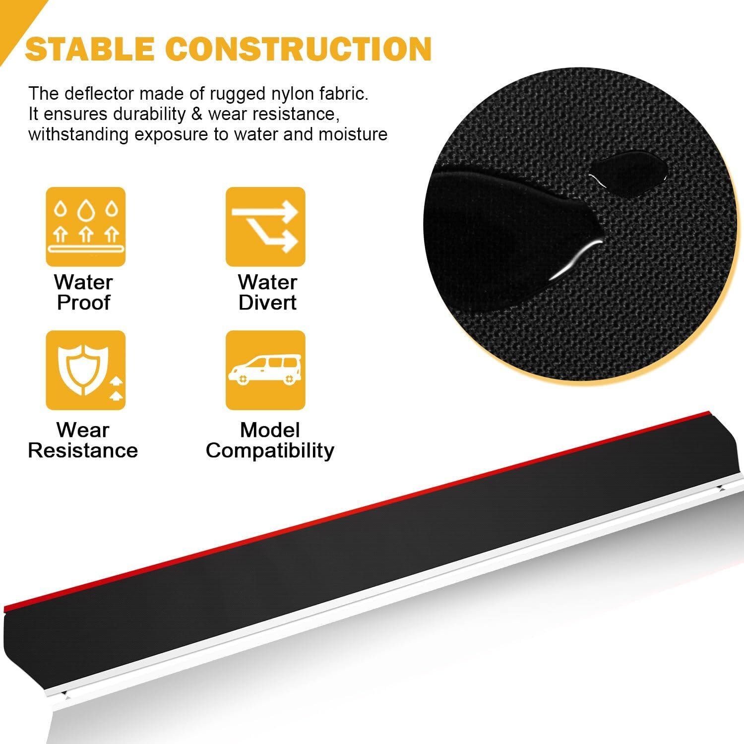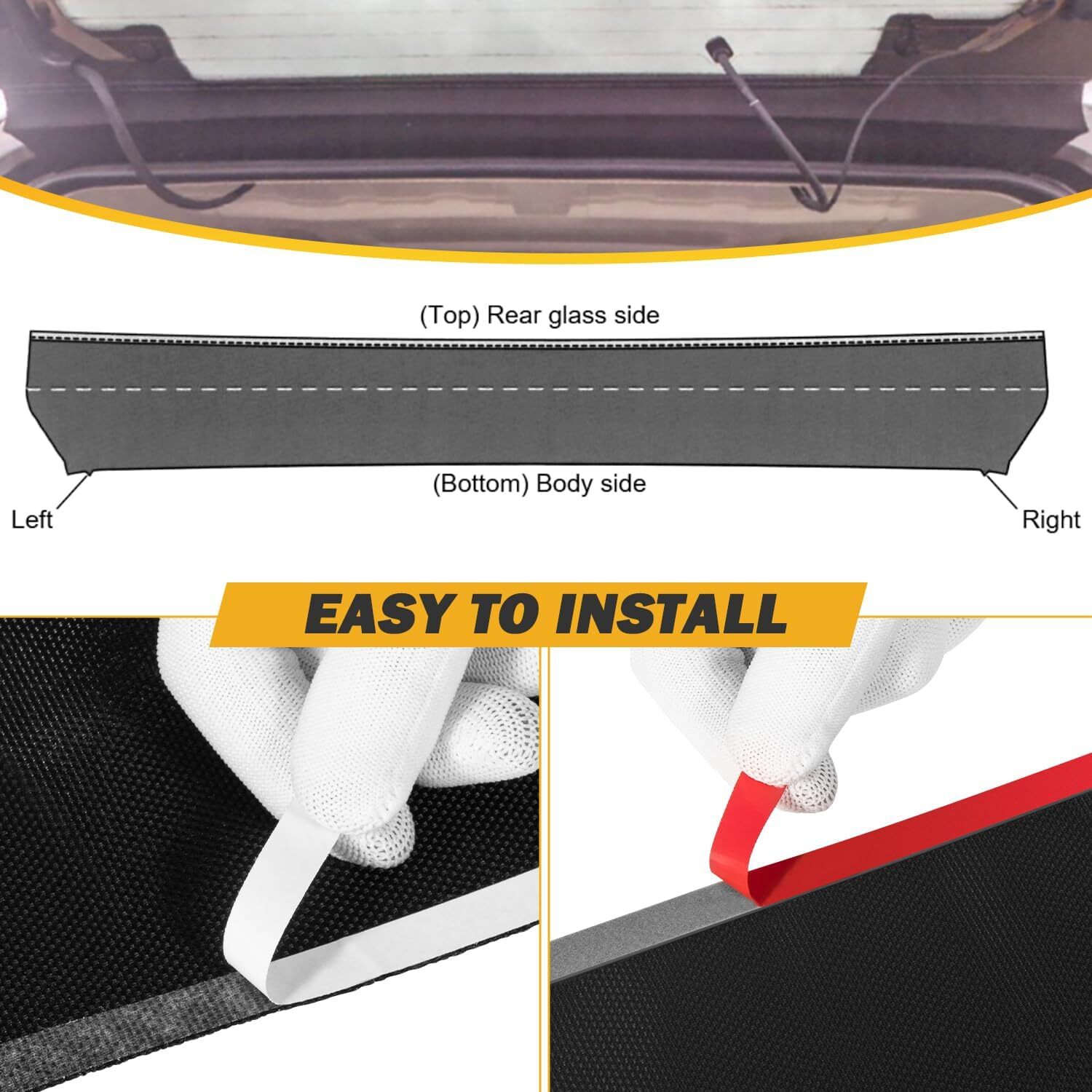 Fitment: This Rear Window Rainwater Gutter fits for 2018-2024 Wrangler JL and 4xe, and for 2011-2017 Wrangler JK. Compatible with four-door and two-door hardtop models, while cannot be installed on soft-top vehicles Features: 1) The rain guard helps divert rainwater towards the sides of vehicles. Prevent water from dripping directly onto their interior and ensure a clearer view through windows 2) The guard reduces intrusion of wind and rain into vehicle's cabin when windows are slightly open. By deflecting rainwater away, it allows for ventilation without compromising interior comfort or safety 3) The deflector made of rugged nylon fabric, featured with double-sided tape attached to the top and bottom. It ensures durability & wear resistance, withstanding exposure to water and moisture 4) By deflecting rain, snow, and debris away from rear window and its surroundings, the guard helps protect glass and vehicle's structure. Reduce the likelihood of rust or corrosion forming around window area Package included: Rear Window Rainwater Gutter