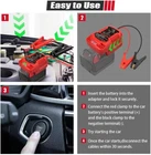About this item 【Compatible With Milwaukee 18V Batteries】The jump cable Charegr adapter is Assist in starting,compatible with milwaukee 18v batteries 18V lithium-ion batteries 48-11-1820 48-11-1822 48-11-1840 48-11-1850 48-11-1852 48-11-1860 48-11-1862 and more(Notice:Battery not included).For Jump Starting Car Using Tool Battery,Engine12V Auto Battery Booster. 【Newly Upgraded Jump Starter】Beaspi re jump starter cable is designed to be compatible only for Milwaukee battery(Compatible with Milwaukee batteries).Easy to use, only need to move the power adapter into the groove, then push converter and make sure it has locked the battery.(Battery not included). 【High Quality】Our adapter box is made of durable ABS plastic material. The adapter part is made of pure copper, which greatly improves conductivity and safety. Non-conducting rubber, twice grip design for better conductivity and tension. 【High Quality】Our adapter box is made of durable ABS plastic material. The adapter part is made of pure copper, which greatly improves conductivity and safety. Non-conducting rubber, twice grip design for better conductivity and tension. 【Easy to Use】First, charge the car battery for about 2 minutes and then starting the car. ①-Connect the red battery clip of the jumper cable to the positive pole (+) of the vehicle and the black to the negative pole (-); ②-Plug the jumper into the jumper starter socket; ③-Start the car and disassemble Lower clamp. (Please follow the correct steps after reading the instructions for use). Package included: 1* Jump Charger( Battery not included)