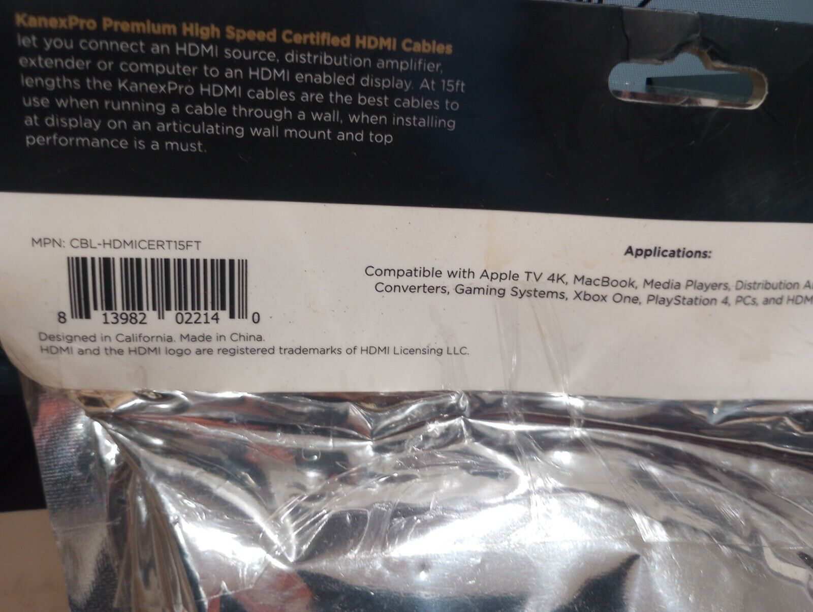Condition: New, See Photos. Included: KanexPro HDMI Cable with Ethernet 15 Feet CBL-HDMICERT15FT (Free Shipping)