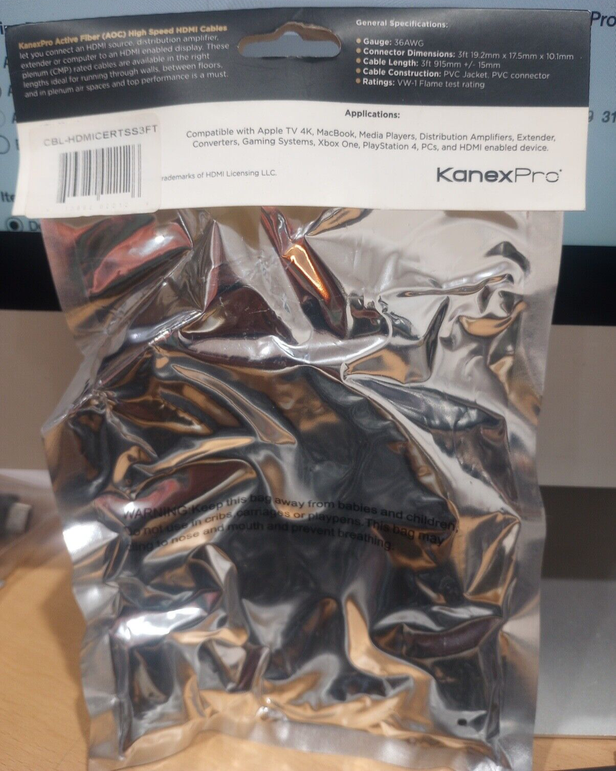 Condition: New, See Photos. Included: KanexPro HDMI Cable with Ethernet 3 feet CBL-HDMICERTSS3FT (Free Shipping)