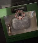 The Kate Spade AirPods Pro Case is a designer accessory that is compatible with both 1st and 2nd generation Apple AirPods. It features a sleek silver glitter color with a clip for easy attachment. The case is designed by Kate Spade New York and includes a manufacturer warranty as shown in the picture on the back of the product. Perfect for adding a touch of luxury to your AirPods, this case is both stylish and functional for keeping your EarPods safe while on the go. See pictures of product, condition, color and style. Box seems to still be sealed but box has some damage. Alarm tape seems intact but does not attach to box. See pictures.