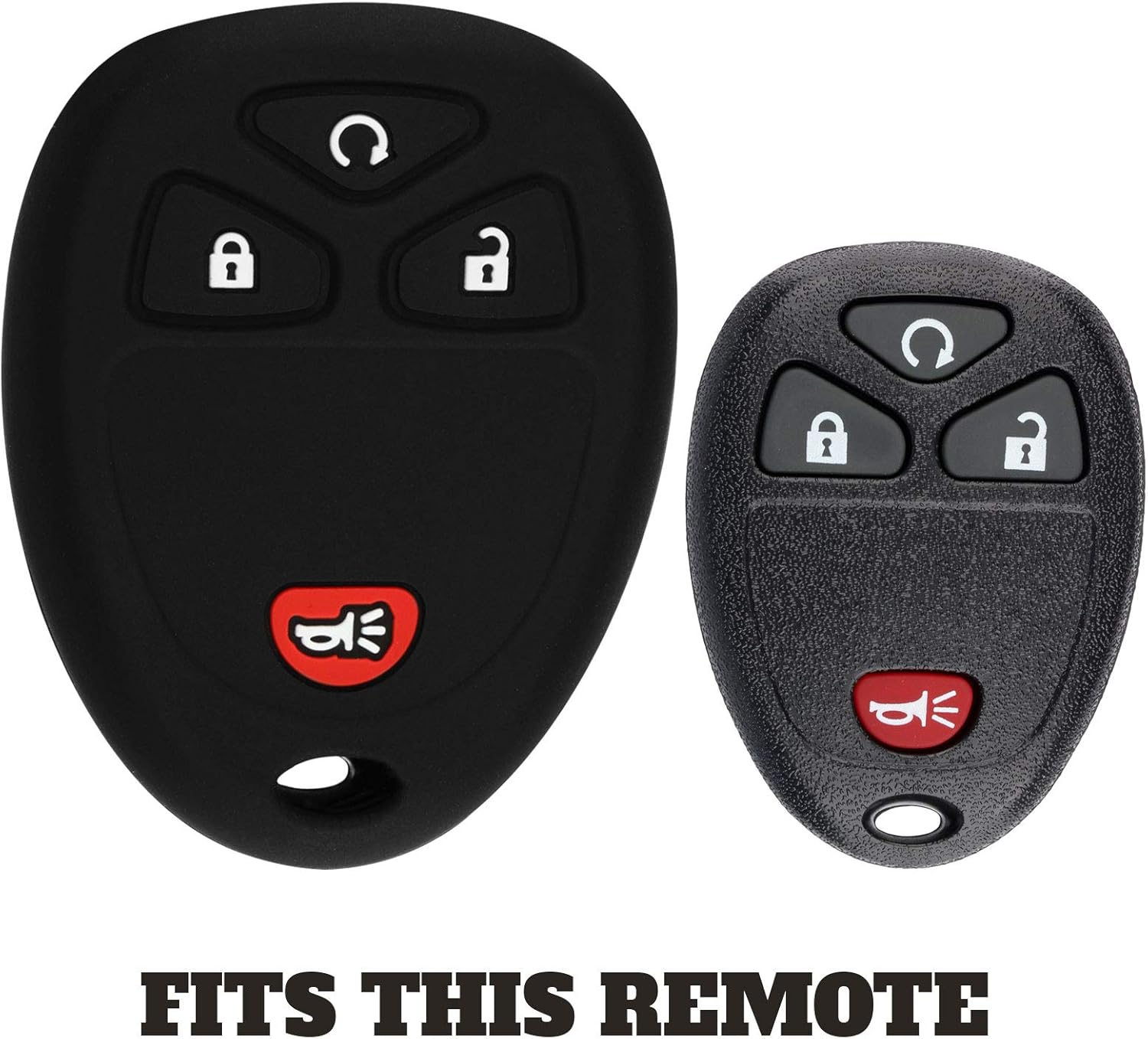 Keyguardz High quality silicone soft rubber protective shell outer cover for your existing keyless entry remote fob Precise fitment compatible with FCC ID: KOBGT04A, OUC60270, OUC60221, M3N5WY8109 P/N: 15114374, 15913421 Prevent damage and personalize your remote or key - Simply slide protective cover over your existing remote or key No tools required Works with the vehicles that use the same style remote as pictured See product description for a list of compatible vehicles and part numbers Cover and protect your existing key or remote from damage and scratches! - Simply slip this protective cover shell over your existing remote or key. No tools required. Keyguardz is a silicone soft rubber key or keyless remote key protective cover shell case To confirm that this cover will fit your remote, please make sure your vehicle is listed as compatible We also ask that you visually compare your existing key to ensure proper fitment. Compatible with the following vehicles and part numbers 2008-2017 Buick Enclave 2005-2007 Buick Terraza 2007-2014 Cadillac Escalade EXT, ESV 2007-2009 Cadillac SRX 2007-2013 Chevrolet Avalanche 2008-2015 Chevrolet Captiva Sport 2007-2014 Chevrolet Equinox 2008-2019 Chevrolet Express 2006-2011 Chevrolet HHR 2007-2013 Chevrolet Silverado 2007-2014 Chevrolet Suburban 2007-2014 Chevrolet Tahoe 2009-2016 Chevrolet Traverse 2005-2009 Chevrolet Uplander 2007-2017 GMC Acadia 2008-2017 GMC Savana 2007-2014 GMC Sierra 2007-2014 GMC Yukon 2005-2009 Pontiac Montana 2007-2009 Pontiac Torrent 2007-2010 Saturn Outlook 2005-2007 Saturn Relay 2008-2010 Saturn Vue 2007-2009 Suzuki XL-7 For FCC ID: KOBGT04A, OUC60270, OUC60221, M3N5WY8109 Part Numbers: 15114374, 15913421, 20868672, 20952474, 22759546, 22936098