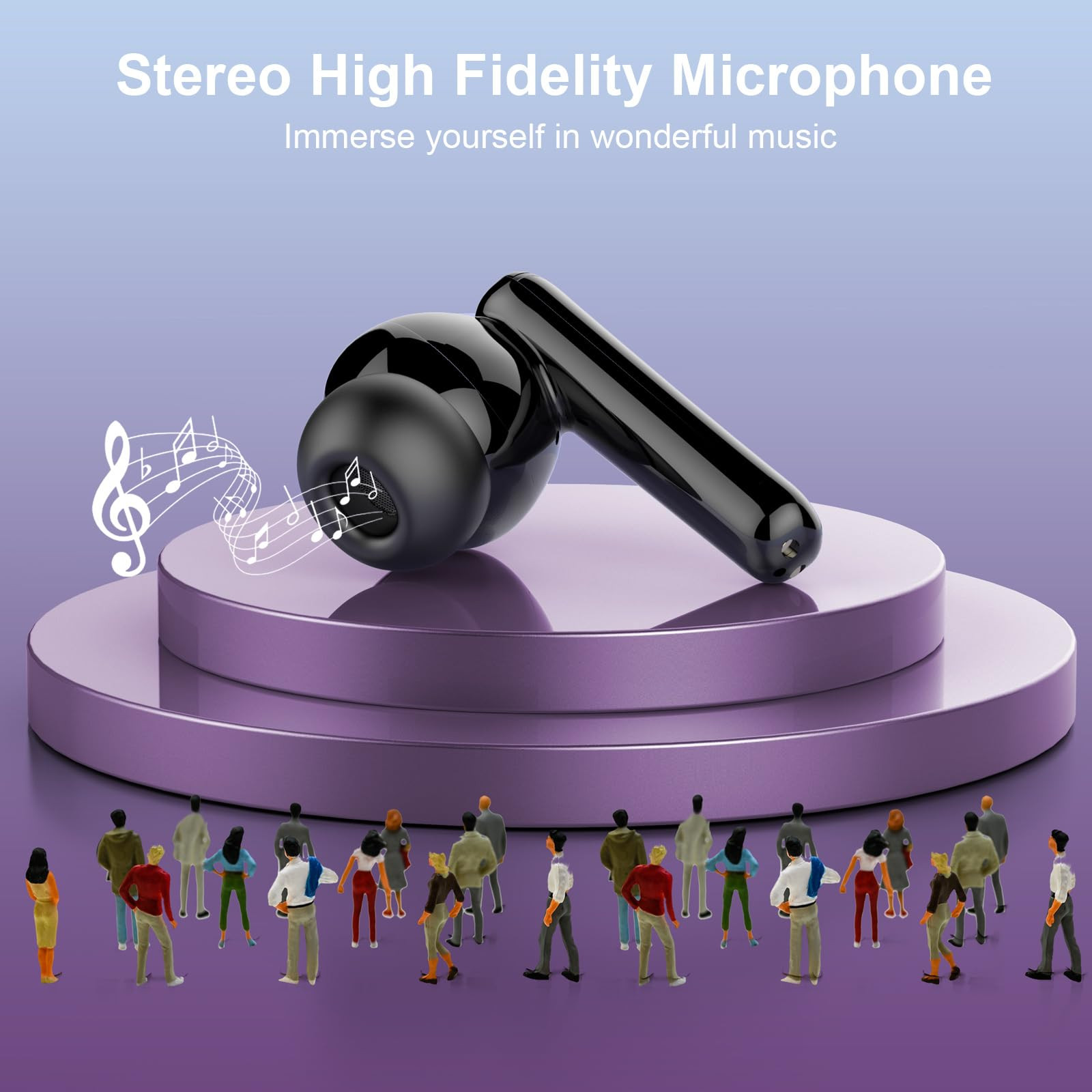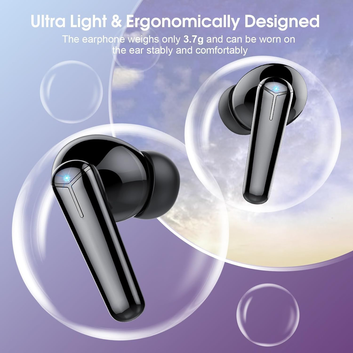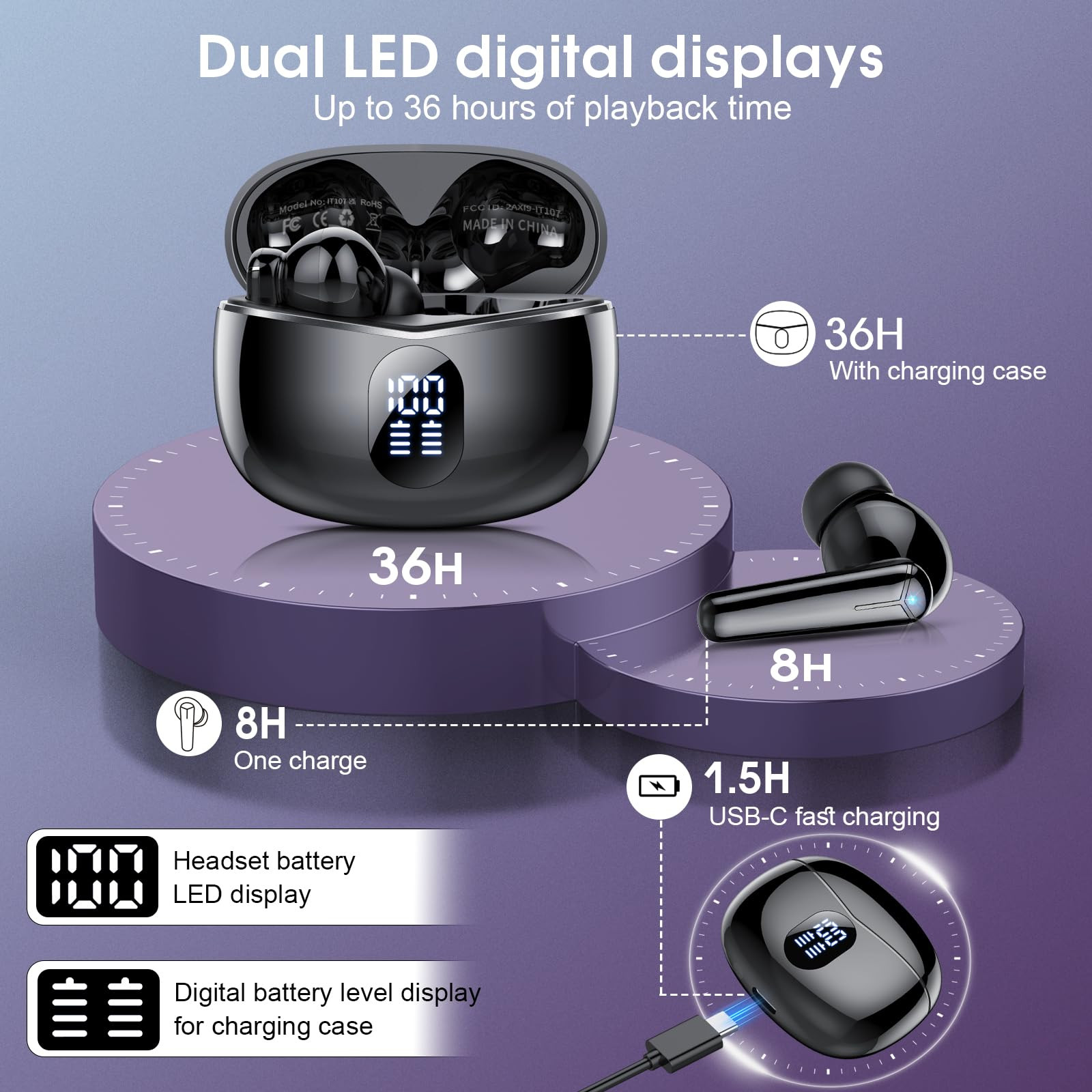 Bluetooth 5.3 Technology and One-step Pairing: Our wireless earbuds harness the cutting-edge Bluetooth 5.3 technology, offering a remarkable 3X faster transfer speed compared to the previous generation (80% higher), ensuring a highly stable connection with virtually no latency. Whether you're at home, in the office, or on the move, rest assured that your Bluetooth connection will remain steadfast. Once initially paired, these Bluetooth headphones seamlessly connect to your device the moment you pick them up. Clear Calls, Immersive Stereo Sound: With 13mm speakers and triple-layer diaphragms, these earphones deliver powerful bass and crisp treble, elevating your auditory experience. Ideal for music lovers, they support mono and stereo modes for sharing. The built-in microphones in each earbud ensures clear phone calls, enhanced by ENC noise reduction for optimal voice clarity. Comfortable Fit, IP7 Waterproof: Each Bluetooth earbud weighs a mere 3.3g, boasting an ultra-light and ergonomic design that allows for extended wear without discomfort. Our Bluetooth earphones are equipped with IP7 nano-coating, rendering them waterproof and sweat-resistant. Perfect for individuals engaging in fitness activities or traveling, these sports earbuds guarantee a worry-free experience. 36 Hours Playtime and LED Digital Display: Featuring a fast-charging Type-C interface, our in-ear headphones can achieve a full charge in just 1 hour. Enjoy over 8 hours of playtime from a single charge and a total of 36 hours with the charging case. The intelligent LED digital display provides real-time battery status for both them and the charging case, empowering you to manage charging times effectively. Smart Touch Controls and Wide Compatibility: Our IT107 ear buds boast high-sensitivity touch technology, enabling effortless control of various functions, such as play/pause, answer/reject calls, volume adjustment, music switching, and voice assistant activation. They are compatible with a wide range of Bluetooth-enabled devices, including cellphones, tablets, computers and TVs.
