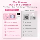 Kids Camera Instant Print, Dual-Lens 48MP Digital Camera for Christmas Birthday Gifts, 1080P Selfie Instant Cameras for Kids with 32GB Card, Instant Print Digital Camera for Girls Boys-Pink MORE BENEFITS 📷 Dual-lens Instant Print Camera: 3-in-1 front and rear digital camera can take selfies to capture wonderful moments in HD during festivals or travels; The kids camera has an instant printing function that can print black and white photos in just 1S fast. 32GB card can also store over 2500+ color photos for printing anytime, anywhere; FHD 1080P video camera take selfies and blogs anytime. Black and white printing+color storage+video recording with dual-lens photography, very convenient! 📷 Upgraded 48MP Instant Camera: This print digital camera has been upgraded to 48MP super HD pixels to take clear photos! The kids camera has a 2.4-inch screen, 1080P video, 16x digital zoom, fill light, time-lapse photography, continuous shooting, timer, playback, 25+ filters and sticker frame, and selfies. Anime sketches, photography, painting, 1080P recording, and taking selfies during holidays are a favorite form of entertainment for families and children. 📷Safe Durable Material: Kids instant camera adopts advanced thermal printing technology, the printing paper materials are safe and environmentally friendly, odor-free, and non-toxic, which is safer and more assured. High-quality soft shockproof shell and long neck strap effectively protect portable travel camera against drops. Safe and reliable toys let parents needn't worry. It can be connected to a computer through a USB-C cable to transfer photos or videos from the camera. 📷Portable & Long Battery Life: The potable instant print camera allows for faster charging and saves time. After fully charging, the travel compact camera can continuously take photos or record videos for 3-4 hours! Camera with 1*32GB micro SD card can store 2500+ photos(MAX 128GB). Whether used by children, teens, or adults, it can be filmed anytime, anywhere, capturing every beautiful and joyful moment. 📷Creative Gift for Kids: Aasonida print toddler camera is educational and interactive and this mini vlogging camera toy is the ideal birthday, Easter, Christmas, Childrens 'Day holiday gifts for boys girls aged 3-12. Let your children have their own cameras and stay away from your smartphones. Your kids will have their own fun camera to discover surprises in life, reduce game hazards, and stay away from electronic devices such as phones.