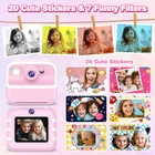 【Upgraded Kids Instant Camera】Our upgraded Instant Camera features a 12MP dual-camera. Unlike other kids camera in the market, our kids instant camera comes with Front and rear lens and HD instant print, making it easy for kids to take selfies and print photos. The digital camera can easily achieve focus, and prints out children's creations promptly, cultivating their creativity and imagination, and realize the little photographer's dream! 【Multifunctional Kids Digital Camera】 Kids Camera has instant printing, HD front and rear cameras, 2.4-inch screen, 16x digital zoom, 1080P video, time-lapse photography, flash, continuous shooting, 7 filter, 20 frames, mp3, games. Your kids can better capture the memorable moment and make a photo album. An ideal kid camera to develop children ages 4-12 an interest in the art of photography. 【Safe Tech】This kids instant print camera utilizes inkless printing technology, eliminating the need for ink or toner. Ensuring that it's both safe and easy for children to use. Additionally, the camera is protected by a high-quality plastic cover, providing effective shock absorption and preventing accidental drops or bumps.Parents can feel confident in allowing their little ones to enjoy this secure and enjoyable toy. 【Portable & High Capacity】Our kids' instant camera features a built-in 1200mAh battery that allows up to 6 hours of continuous shooting on a single charge. Equipped with Type-C charging technology, which can charges quickly, saving time. Including a portable lanyard hang for easy carrying and movement, kids can capture all the special moments. It also comes with a 32GB SD card for connecting to a computer via USB cable to transfer photos and videos. 【Perfect Gifts for Girls Aged 3-12】An ideal choice for birthday, Christmas, or holiday gifts for girls and boys aged 3-12. Surprise the child with a special gift! Additionally, we include 5 watercolor pens for kids to color their masterpieces.