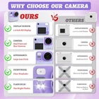 Kids Camera Instant Print with Silicone Cover, Dual Front and Rear Digital Camera Toy for Toddler, Birthday for Boy Girl 3 4 5 6 7 8 9 10 11 12 Years Old (Purple) MORE BENEFITS One-click Printing Kids Camera: 3 in 1 take photos, video and print. The kids digital camera with instant printing function can obtain color photos while quickly printing black and white photos. Kids can also paint on the photo paper with the provided pens. 32G SD card is installed in advance to store hundreds of color photos and videos. Dual Front Rear Lens Camera: The kids camera with instant print, 2.8-inch IPS big screen, 1000 Mah battery capacity, 1080P video, 16 times digital zoom, flash, time-lapse, continuous shooting, games, filter frame, mp4. Kids can selfies easily with front rear dual lenses. Portable and Powerful: Covered with a protective silicone bag and strap, this travel camera is easy to carry for children. The toddler camera uses a C-type charger and can last 2-3 hours for photoing or listening to music after full charging. 3 rolls of camera paper included. Safe and Reliable: Kids instant camera is printed with advanced thermal printing technology, the printing paper is BPA FREE, nontoxic, and environmentally. High-quality soft plastic shockproof shell provides effective protection against drops. Safe and reliable toys are the coolest gifts for kids. Ideal Gift for Kids: This mini toy camera is an educational, fun, and interactive gift for a birthday surprise, Children's Day and Christmas Gift, holidays, and vacations for girls and boys aged 3-14 years. Let your children have their cameras and stay away from your mobile phones.