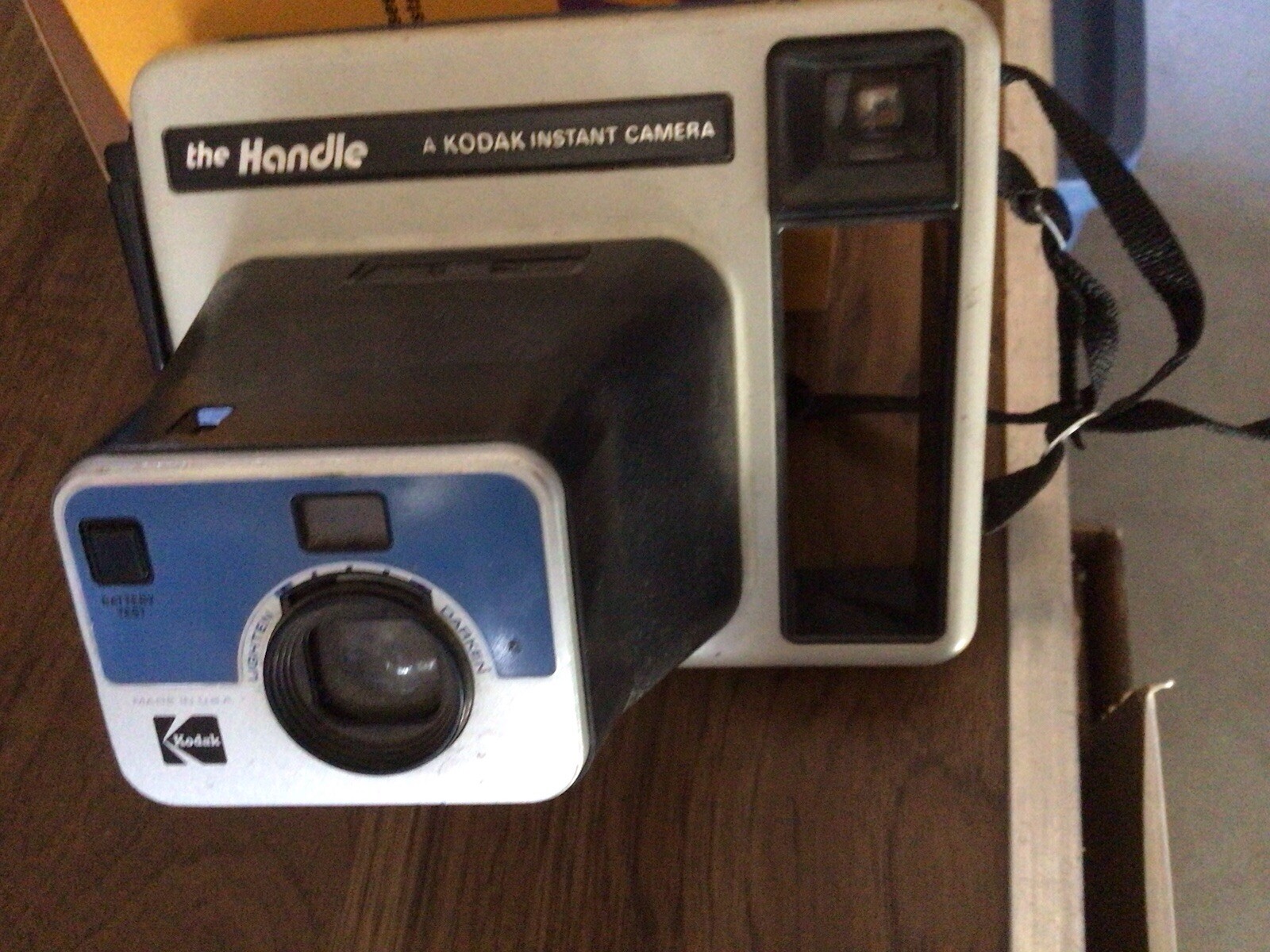 This is a vintage Kodak instant camera in black color, manufactured in the United States. It falls under the Vintage Cameras and Instant Cameras categories.