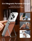 Portable Power Banks 【Compatibility 】Mag-Safe wireless power bank works with iPhone 15/14/13/12 Plus/Pro/Max/Mini series. ONLY compatible with MagSafe certified phone cases or without cases. 【Smart Card Storage】 dynamic tension spring holds one or two cards equally securely while easy-access cutout makes removing them when you need them quick and easy. 【Foldable stand & Magnetic Wallet】This magnetic wireless power bank is equipped with a flexible, foldable zinc alloy stand that holds your iPhone (horizontally or vertically). You can watch videos while charging. Free your hands. Thanks to the compact design, the Mag-Safe power bank does not interfere with the iPhone camera lens. Weighing only 114g (4.1*2.7*0.41in), the ultra-light design allows you to carry it with you and also fits perfectly in your pocket. 【Fast Charging】Supports wireless charging with max. 15W; 2024 latest PD USB-C output/input with max. 20W. Supports charging 2 devices at the same time. The power bank iphone can charge your iPhone to 55% in 30 minutes. On the LED display, you can clearly see the exact remaining battery and the green PD fast charging sign. 【High-Quality Design】The robust aluminum alloy process and the zinc alloy rolling axis ensure high durability, while the exquisitely rounded corners and texture ensure a pleasant feel. The metal casing also provides better heat dissipation, adding a touch of luxury to the product and making you feel like you are touching exquisite works of art when using it. 【What You Get】Magnetic Power Bank 5000mAh x 1, USB-C Charging Cable x 1, User Manual x 1. Please rest assured that every product we send to you has gone through a full series of quality control procedures. If you have any questions about the compatibility of the wireless power bank, please contact us and we will provide you with the best solution within 24 hours!