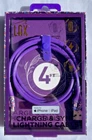 LAX Apple MFI-Certified Charge & Sync Lightning Cable 4ft Braided Purple w/Flowers New in unopened box 4 ft Purple w/multi-colored flowers on ends