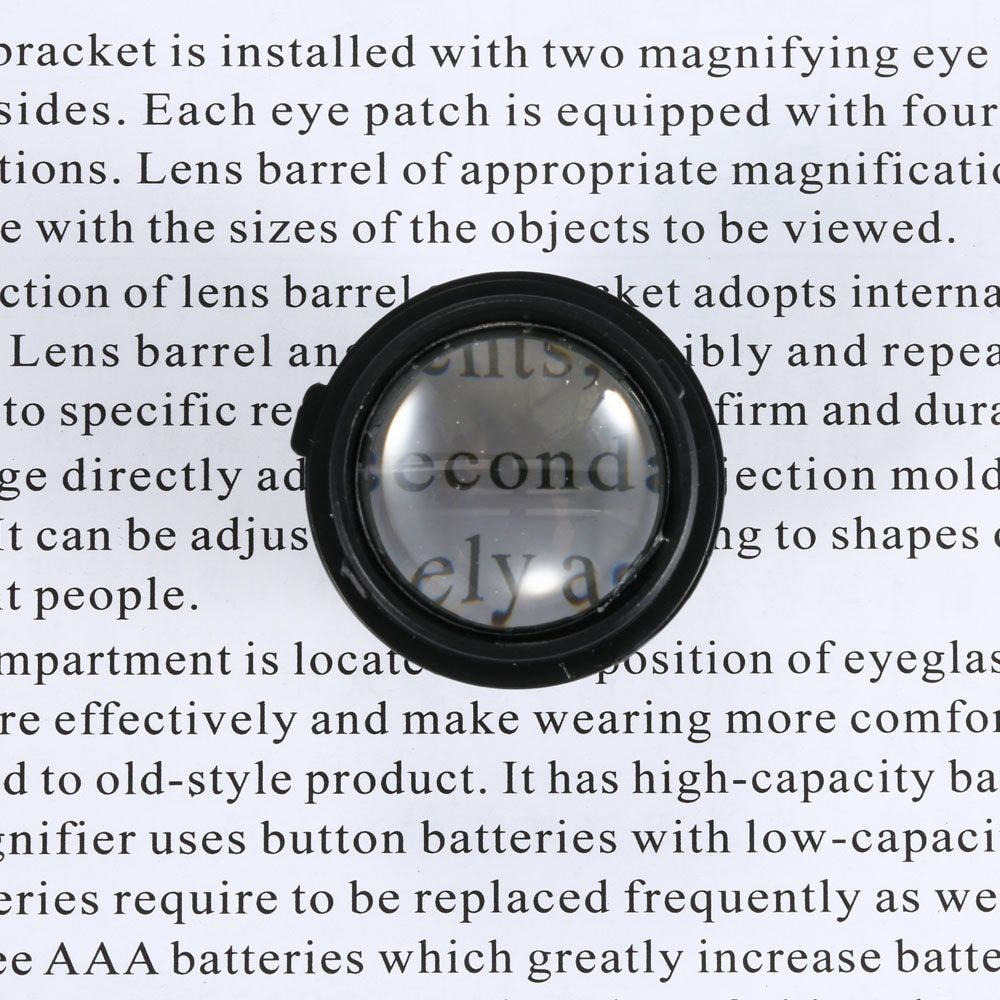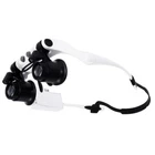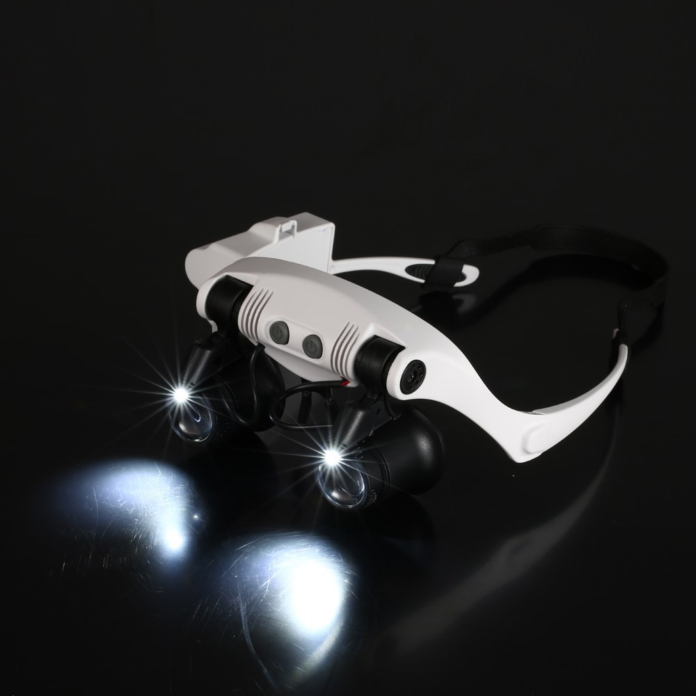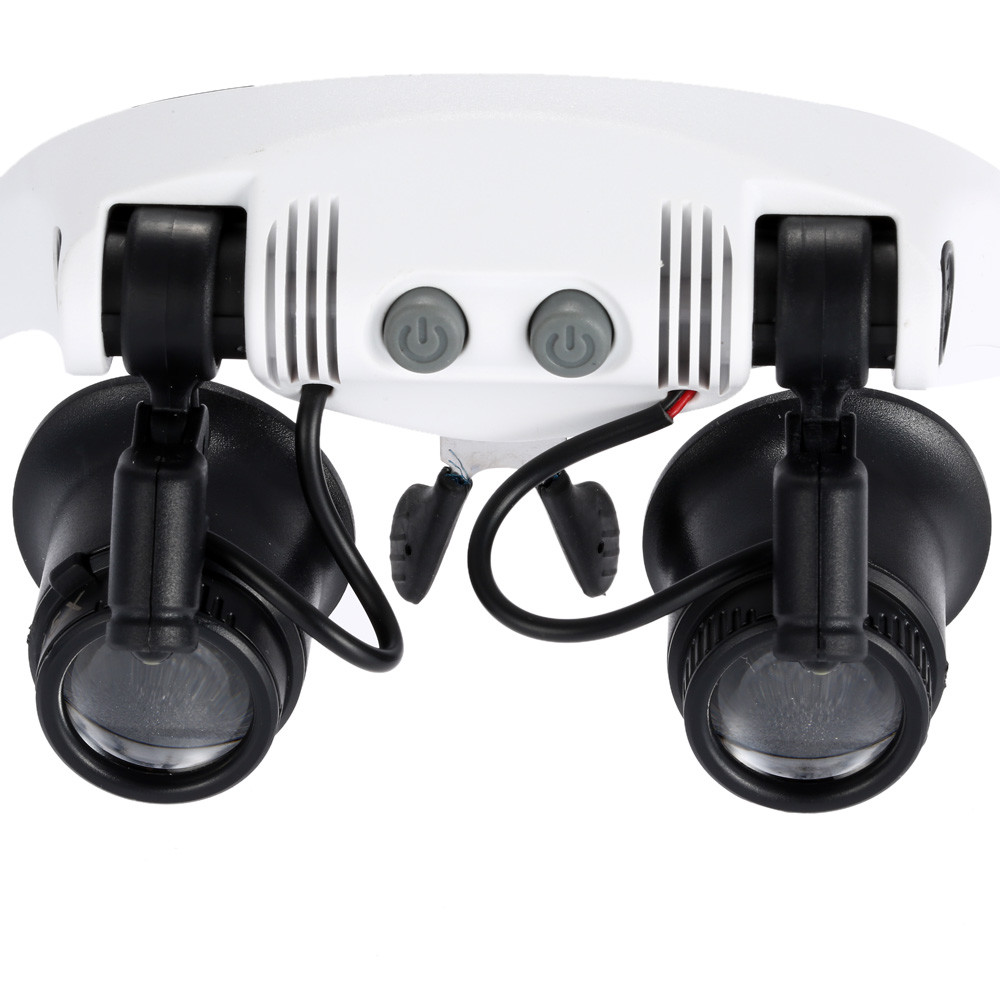 1 0x 15 x 20x 25x Head Wearing Magnifier P ortable Magnifying Glass with 2 LED Light Double Eye Jeweler Watch Clock Repair Loupe Features: 2 adjustable LED lights. Detachable elastic silica gel headband. High quality that durable enough for daily use. This head wearing magnifier is more practical than handheld one. 4 lenses in different magnifications for your choice(10X, 15X, 20X, 25X), and they are very easy to be switched. Portable for home, office, classroom, laboratory, watch shop or jewelry shop using. Applicable to industry, electronics, education, geography, medicine, miniature engraving, timepieces repair, insects observing, coins and stamps collecting, etc. Specifications: Material: ABS & Acrylic Color: White Lens Magnification: 10X, 15X, 20X, 25X Power Supply: 3 * 1.5V AAA battery (not included) Item Weight: Approx. 147g / 5.19oz Package Weight: Approx. 286g / 10.09oz Package Size: Approx. 20.5 * 18 * 7.5cm / 8.07 * 7.09 * 2.95in Package List: 1 * Magnifier 1 * Rubber Band 4 * Pair of Lenses(10X, 15X, 20X, 25X) 1 * Manual Payment *We only accept payment from PAYPAL and all major creditcards accepted by paypal. *Payment is required to be made within 6 days from the closing date of your auction or purchased. *If you don't pay in time, we can't promise we will keep the item you bidded in stock all the time. *Any problem with payment pls contact us first. For getting back the trade final fees from ebay,we will file a non-paying bidder alert with ebay. Shipping * We only ship items to your confirmed address in Ebay (except APO/FPO), so please make sure the address is correct before purchase. *Items of most orders will be shipped out within 1-3 business days upon receipt of your payment confirmation and you can receive them within 10-21 business days. Delivery depends on destination and other factors, it may take up to 21 business days or more. *We are not responsible for import charges or fees. *Damaged on Arrival: When you sign the parcel, please check it carefully. You'd better take a video or photos when open it. If there is any damage or shortage for your parcel, contact your Post Office or Express company immediately, Please send video or photos to our service staff at the same time. Customer Service *Your satisfaction is important to us. If you are not satisfied with our products/services, please contact us BEFORE leaving us any neutral or negative feedback, we will try our best to resolve any issue. *Please note that we are using the automatic eBay Feedback system which would automatically leave positive feedback to buyers after receiving positive feedback from them. *No refund or return is available for NEGATIVE feedbacks. Contact us You can contact me if you have any questions. Our Business Hours(Beijing): 8:30A.M.-5:30P.M. Mon-Fri.
