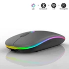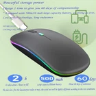 LED Wireless Mouse, Slim Silent Dual-Mode 2.4G+BT Rechargable 7-Color Mouse Portable Mobile Optical Office Mouse with USB Receiver, 3 Adjustable Levels for Notebook, PC, Laptop, Computer, MacBook (Gray) [Dual mode Wireless Bluetooth] (BT5.2/3.0+2.4G) Dual mode to achieve a computer mouse between two devices free switching. Bluetooth Mouse mode connects one device via BT5.2/3.0 and wireless mouse mode connects another device via 2.4G USB receiver, plug and play. Wireless/Bluetooth technology provides a robust and reliable connection that enables fast data transfer with no delay or interruption and an effective range of up to 30 feet. [Rechargeable energy saving] Wireless mouse contains durable lithium-ion battery, high cycle life. There is no need to replace the battery and the mouse can be easily charged using the included USB cable. Notebook wireless mouse inactive 5 minutes after entering the sleep state, save electricity, can be used for a long time. You can wake up USB mouse by clicking any button. The Silent mouse uses a unique silent click technology to ensure that clicks are almost noiseless, allowing you to enjoy 90% of the click noise, so that you can focus on your work, so that quiet work does not disturb others, ideal for office and home use. It can easily fit into a laptop bag, saving space. Good surface coating technology gives you a skin-like touch, ultra-thin, lightweight, portable and durable ergonomic mouse is perfect for travel. [Widely compatible] This wireless Bluetooth mouse is suitable for laptop, PC/ tablet /Macbook/ mobile/Apple. Mouse is compatible with Android/this/Windows/Vista/Linux/Notebook/Mac OS and other equipment. Suitable for home, office, travel, etc. [Color LED breathing light] The mouse is equipped with different LED color breathing lights, different colors change randomly when in use, providing soothing lighting. Create a cool atmosphere for work and play. LED mouse can give you more fun. [Adjustable level] Wireless Flat Mouse 800/1200/1600 resolution optical tracking technology provides higher sensitivity than standard optical mice for smooth and accurate tracking over a wide range of surfaces. You can freely choose your cursor speed, reducing muscle fatigue and improving your workflow. Whether working on tables, browsing the web, or gaming, this wireless mouse will ensure smooth and responsive performance.