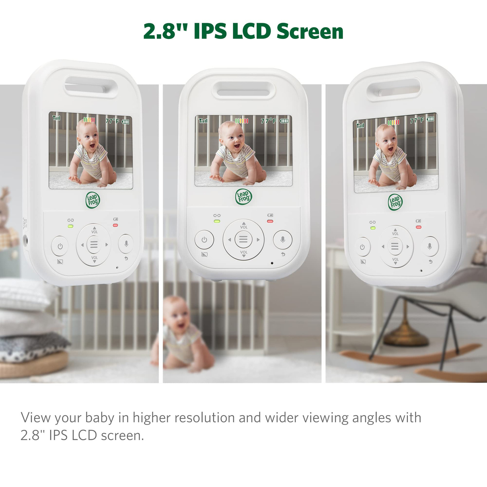 Check in on your little one with a 2.8-inch IPS LCD screen on the LF2423 Digital Video Baby Monitor. Soothe your baby using the lullabies and soft sounds that play right from the baby unit. Plus, you can make sure your infant is cozy by monitoring the nursery temperature that's displayed right on the LCD screen. Best of all, you can easily monitor your baby throughout the night with up to 12 hours of video streaming on one charge. 【2.8" IPS LCD SCREEN】- High-resolution video baby monitor, 2.8-inch IPS color LCD screen, With this IPS display, you get wider viewing angles and greater variety of colors and color accuracy making it easier for you to monitor your baby from all angles. 【RECHARGEABLE BATTERY WITH UP TO 12 HOURS OF VIDEO STREAMING】- Keep an eye or ear on your baby throughout the night on one charge with up to 12 hours of video streaming or up to 19 hours of audio only streaming. 【LONG RANGE UP TO 1000 FEET】- The baby monitor without WiFi stay connected while going about your day. Easily hear, see, and communicate with your baby from another room or even from your yard without fear of fading audio quality or lost connection. 【INFRARED NIGHT VISION CAMERA WITH 2X ZOOM】- Video baby monitor enhanced night vision technology allows you to clearly see your baby with automatic infrared night vision. Video monitor with digital zoom of up to 2X get closer to your baby when required. 【SOOTHING SOUNDS & NIGHT LIGHT】- LF2423 baby monitor create a pleasant ambience for the baby by playing sounds/lullabies to soothe the senses. Choose from two calming melodies and two soft ambient sounds. The night light of the baby monitor with camera and audio can also be illuminated to create comfort. 【TEMPERATURE SENSOR】- Monitor the environment of the baby for right temperature get alerts when required. 【SECURE TRANSMISSION MODE WITH TWO-WAY, TALK-BACK INTERCOM】- Video baby monitor using 2.4GHz FHSS technology be rest assured about the security of camera feed. Sometimes all your baby needs is to hear the sound of your voice. Comfort your infant from any room with the built-in intercom on the portable parent viewer.