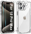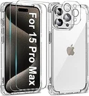 L-FADNUT for iPhone 15 Pro Max Case Clear with 2X Screen Protectors and 2X Camera Lens Protectors [Anti-Yellowing] Transparent Shockproof Bumper Cover Slim Protective Case for iPhone 15 Pro Max Clear