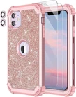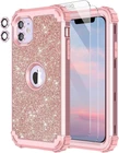 LONTECT for iPhone 11 Case with 2 Tempered Glass Screen Protector+2 Camera Lens Protector|Three-Layer Shockproof Heavy Duty Full Body Sturdy Protective Case for Apple iPhone 11 6.1"|Shiny Rose Gold