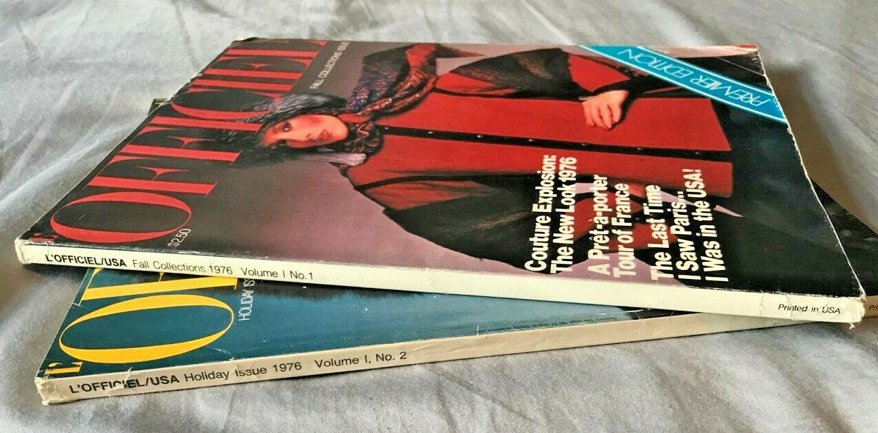 This listing is for vintage L'Officiel USA Premiere and 2nd edition magazines. This set is a rare find! Condition of both these magazines is good, with some creasing and scuffing on the covers as shown in the photos. The Premier Issue of L'Officiel Magazine USA is a Fall Collections focused issue, Vol. 1, No.1 and the second issue is a holiday focused issue, Vol. 1, No. 2. L'Officiel USA is- " Born in Paris and raised in America, L’OFFICIEL USA is part of a leading global network of fashion, beauty, and lifestyle publications. Steeped in the history of French fashion and adding the perspective of the moment’s most exciting cultural figures, the magazine offers visually beautiful, thought-provoking stories that inspire. L’OFFICIEL USA is dedicated to providing readers with vibrant and intelligent features, the latest news, and articles reflecting an inclusive, dynamic, and global community." Thanks for stopping by!