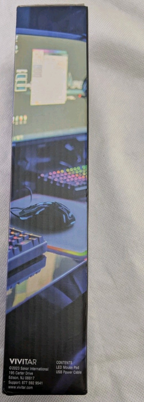 This is a Lvlup Pro gaming mouse pad in black with 12 lighting modes. It is plain in design, large/XL in size (12.6x8.7 inches), and features a non-slip surface. The mouse pad also includes a built-in USB port for convenience during gaming. This new, unopened package is made in China.