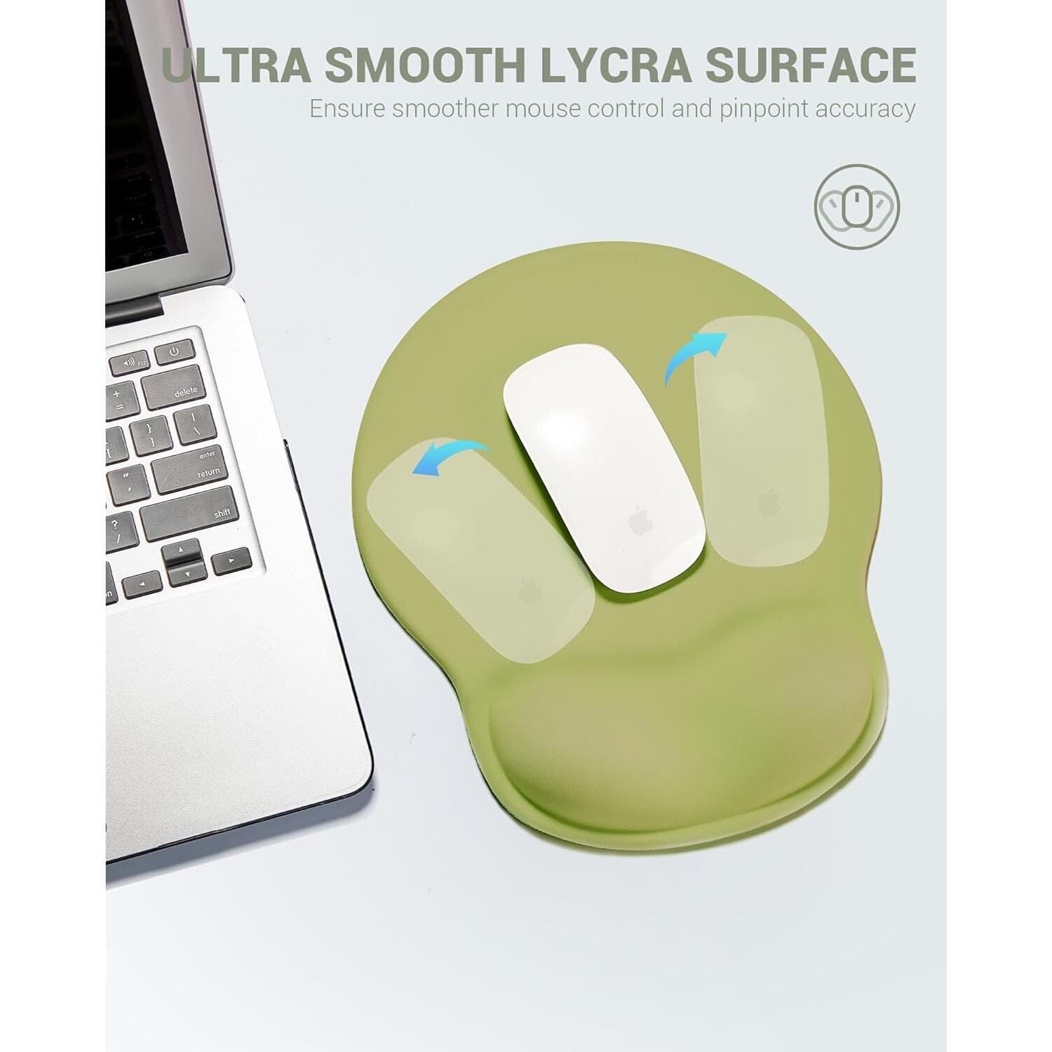 **Laborio Ergonomic Mouse Pad with Gel Wrist Rest** - **Ergonomic Support** - Comfortable gel wrist pad reduces pain and prevents carpal tunnel syndrome - Suitable for all mouse types: wired, wireless, mechanical, laser, optical - **Smooth Movement** - Premium Lycra fabric surface enhances smooth mouse tracking - **Spacious Design** - Large size (10.6" x 9" x 1.18") offers ample room for free mouse movement - Ideal for work, gaming, or as a thoughtful gift - **Stable & Non-Slip** - Non-slip silicone rubber base firmly grips the desk for steady operation - Perfect for fast, continuous gaming actions