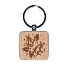Ladybugs and Leaves Engraved Wood Square Keychain Tag Charm