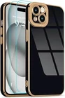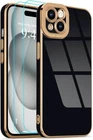 Lafunda for iPhone 15 Case for Women Girls with [2pcs Screen Protector] Cute Luxury Golden Plating Shockproof Bumper Elegant Raised Camera Protection Cover Silicone Phone Case for iPhone 15 Black