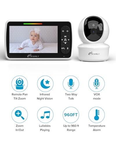 Return Policy Fast Delivery Trusted seller Baby Monitor - Large 5" Screen with 30Hrs Battery Life - Remote Pan-Tilt-Zoom;No WiFi, Two-Way Audio, Night Vision, Temperature, Lullabies, 960ft Long Range Baby Monitor with Camera and Audio Product Description Full Room View Baby Camera with Convenient Control: Immediately pan the room, zoom in on your baby and tilt the camera to view virtually any open space in your nursery, child’s bedroom or any space in your home. See everything in view on the crystal clear 5” large monitor screen for peace of mind. Wireless Video Baby Camera Monitor: With enhanced 2.4GHz FHSS, this smart baby monitor operates with no wifi. The wireless connection safeguards your privacy and ensures your baby’s safety. With a private live-stream and no accounts or apps to download, t’s no risk of hacks. Simple set up and instant use. Superior Night Vision Display: Invisible high-powered infrared LED lighting illuminates your baby’s face without interrupting their sleep. You’ll love the vibrant imagery, providing you with a luminescent and distinct view of your baby in the video feed, even in the darkest room. Exceptional Features for Comfort: Anticipate your baby’s needs and make adjustments for their comfort to encourage longer sleep. With a room temperature display, two-way audio, and instant-play lullabies, take proactive steps to soothe your baby back into sweet dreams. What a thoughtful baby shower gift! Feature Rich Baby Cam: View and hear your baby up to 960 feet away. Additional smart benefits - disconnection notification, eco mode voice activation to save battery life, up to 4 cameras expansion option, sound activated LED lighting, auto camera scan view and alarm/timer. Configure baby monitor via wall mount or on tabletop. Shipping Returns Payment Shipping Shipping is FREE to all addresses other than APO/PO boxes in the lower 48 states. All our stock ships from US-based warehouses. Shipped via USPS or UPS (depending on location and package weight) Unless stated otherwise, all orders will ship within 24-72 hours of your payment being processed. Check our feedback to see the great reviews of FAST shipping we offer. Returns Seller does not accept returns Payment We currently accept payment via eBay managed payments only. Once payment is cleared, we will dispatch your shipment within 1-3 business days. Please refer to the "Shipping" tab for more information regarding shipping speed to your destination.