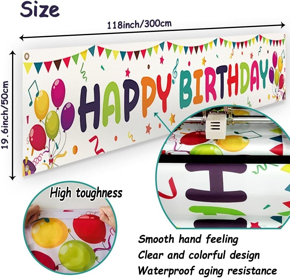 【Large Outdoor Happy Birthday Banner】- This large 118x19.7-inch colorful happy birthday yard and garden banner is suitable for your birthday party of any age, and belongs to your birthday party courtyard sign and birthday lawn sign. 【Multi-Purpose Party Decoration】- This Happy Birthday banner is suitable for many interesting occasions, and can be easily DIY with colored pens, which can fully save you time and energy in decoration, perfectly meet all your photo background needs and record your beautiful important moments. This colorful Happy Birthday Courtyard sign is the best choice to celebrate your birthday! 【Reusable Materials】- The colorful happy birthday banner is made of high tenacity polyester fabric, which is soft and silky, digitally printed in ultra-clear, colorful, clear and cheerful. It is seamless, durable, waterproof, lightweight and colorfast. 【Easy To Hang】- This Happy Birthday Courtyard banner has strong brass buttonholes in all four corners, and comes with a 32feet-long high-toughness white hanging rope, which is convenient for you to hang anywhere. 【 Purchase Instructions 】 - If you damage or lose any parts of the Happy Birthday banner, you can contact our customer support for replacement.