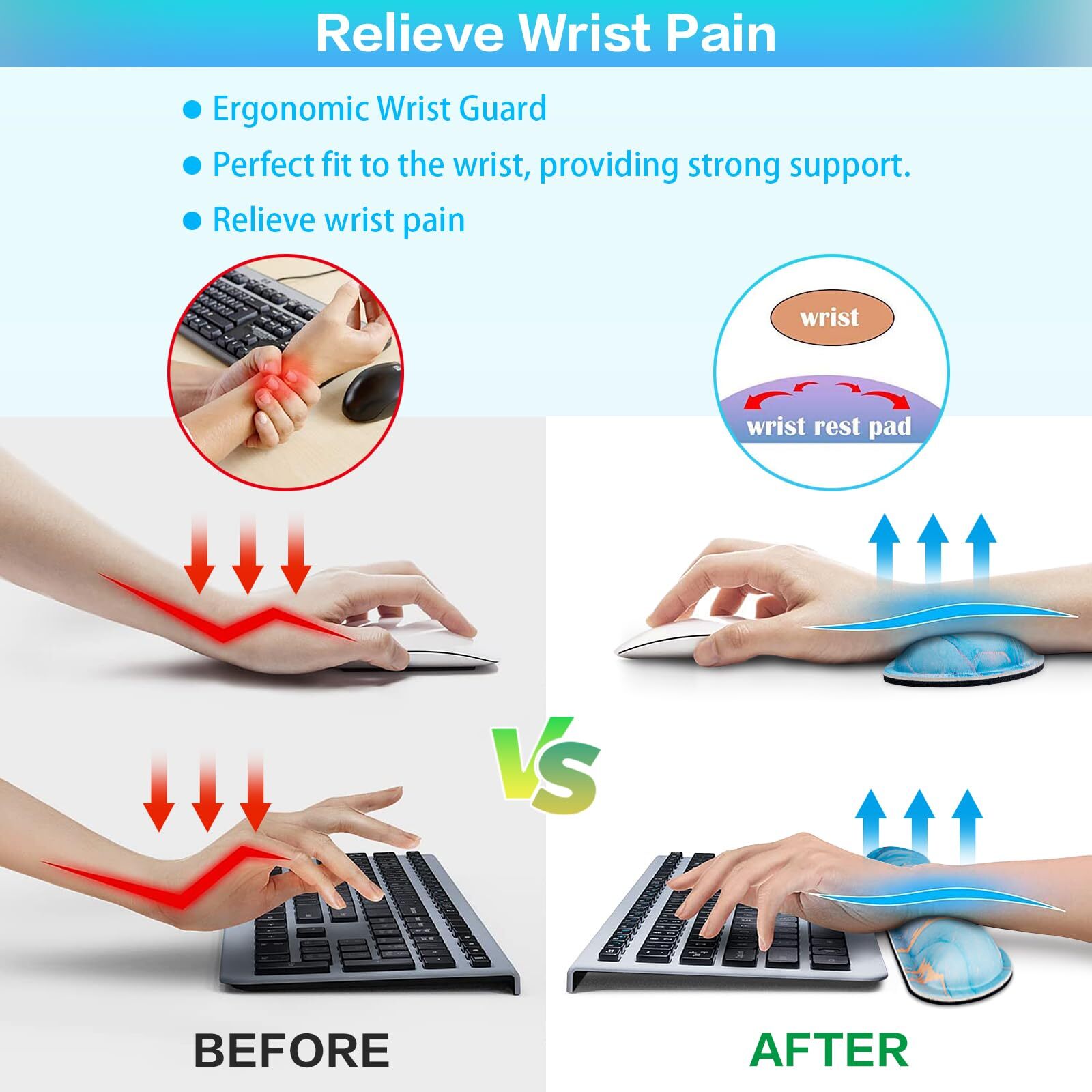We offer Free Shipping on all orders!! Welcome to my store, The Smart of your choice and satisfaction guarantee. Mouse Pad with Wrist Rest,4-in-1 Large Mousepad+Keyboard Wrist Rest+Mouse Pad Wrist Support+Cup Pad Set,Ergonomic Mouse Pad,Anti-Slip,Memory Foam Desk Mat for Home Office Gaming(35.4×15.7in) Product Description Features 【4-IN-1 Gaming Mouse Pad Set】:Our mouse pad gaming and wrist rest package includes large Mouse pad(35.4x15.7in),keyboard wrist pad(17.3x3.74in),mouse wrist rest(6.89x3.74in),coaster(3.9x3.9in).The expansion desk mat is large enough to accommodate keyboard, mouse,mobile phone, Coffee cup etc.Keep the table clean and tidy.This helps improve the gaming experience or work efficiency. 【Ergonomic Design Desk Pad】:The ergonomic Mouse pads with wrist rest fits perfectly with the wrist,providing good touch and effective support for the wrist,and minimizing wrist pressure and fatigue.It is the perfect wrist and hand fatigue relief tool for workers,game players,writers,students engaged in long-term typing work. 【Precise Mouse Control】:The desk protector mats uses precise Lycra fabric to allow you to easily move the mouse while accurately positioning the mouse,optimized for fast movement while maintaining excellent speed and control during work or competition.Can be used for mechanical, wireless, and optical mice. 【Anti Slip &Stitching Edge】:The Mousepads has a rubber base with dense anti slip texture design,which can be firmly placed on the desktop,providing stable operation for the keyboard and mouse.Exquisite double-layer stitching edges can prevent wear,deformation,debonding during long-term use.Environmentally friendly and non-toxic,with a long service life. 【Waterproof Exquisite Gift】:The surface of the keyboard pad has a waterproof coating,which can effectively prevent coffee and drinks from seeping into the mouse mat.Dust,grease and dirt can be easily cleaned with a wet cloth or washing machine.The personalized printed pattern of the large desk mat is exquisite and durable,making it an excellent gift for family,friends and oneself. Payment Policy - Payment managed by eBay. - We accept payment via PayPal, which provides a high level of security for buyers and sellers. All major credit cards are accepted through eBay. - Orders will be processed and shipped only after payment is received. - If you wish to cancel an order, please contact us as soon as possible. Orders that have already been shipped cannot be canceled. Shipping Policy - We do not ship to a different address. We will ship to the address you provide on eBay only. Please check your address before purchase. - Items are dispatched within 24 hours (except weekends and holidays) and shipped from the US. - It should take 3-5 business days for the product to reach your destination (Saturday and Sunday excluded). - We use a selection of shipping services such as UPS, FedEx, USPS, etc. - We ship only to the 48 contiguous states of America. We do not ship to Hawaii, Puerto Rico, Alaska, US Protectorates, APO/FPO addresses, and PO Boxes. Local pickups are not offered. - If it takes any longer than that, please do not hesitate to contact us to resolve the issues. Returns Policy - This product comes with a 30-Day Money Back Guarantee. - If you receive an item and it doesn't work properly or you don't like it for any reason at all, - We have a 100% refund/return policy. We will ship you a new item or refund your money for the full sale amount. - For all returned products, buyers MUST contact us for the returning address.