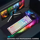 This gaming mouse pad is a game-changer! The colorful aurora design adds a vibrant touch to my setup, while the non-slip rubber base keeps it firmly in place. It's super smooth for precise mouse movements, and the large size gives plenty of room for both keyboard and mouse. The waterproof surface makes cleanup easy, and it’s surprisingly lightweight yet durable. Perfect for gaming or long work sessions—definitely worth it!