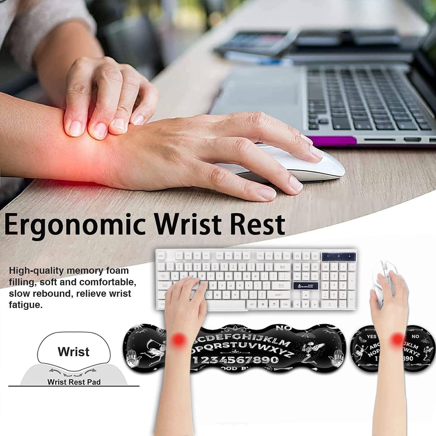 Amazing Deals Await! Welcome to my stores, The Smart of your choice and satisfaction guarantee. Gaming Mouse Pad & Keyboard Wrist Rest,Large Extended Mouse Pad 31.5X 11.8,Ergonomic Memory Foam Wrist Rest Support+Desk Mat Protector,for Office/Home Writing Pad,Ouija Board Pattern Black Mousepad Product Overview Key Features ✓【Large and Extended Size】The size of this XXL large mouse pad is 31.5×11.8 inch,which is big enough to fit your full-sized keyboard, mouse, laptop,or other item on the desk,providing more space for professional gaming or office work. Besides,you can also use this extended mouse pad as a desk pad,writing pad,platform protection mat. ✓【Ergonomic Wrist Rest Design:】Using soft and breathable fabric and comfortable memory foam design, rest the wrist, raise the wrist to a suitable position, and reduce the pain of the wrist. The ergonomic height eliminates the friction between the wrist and the desktop, preventing unnecessary wrist fatigue and injury. ✓【Non-slip Rubber Base:】The Soft and dense non-slip natural rubber base can hold the table firmly. High-quality soft materials bring you comfort and mouse control, Just immerse into your work or games without worrying about the annoying mouse pad movement. ✓【Ultra Smooth Surface & Stitched Edges】This extended mouse pad is easy to be cleaned by wet rag or washed, Covered by the superfine fabric, the mouse pad has a soft and smooth surface, helps you track the mouse fast and accurately, maximally enhances your gaming/working experience.Double stitched edges protect the mouse mat from wear. Urable enough for long time using. No deformation Much more durable other mouse pads. ✓【More 】 All our products have passed strict quality tests. If your product fails or is damaged, please feel free to contact us. we can offer you a new one or 100% money back. So, what are you waiting for? Add to your cart Now! Payment Guidelines ⦿ Payment is processed through eBay's secure system. ⦿ We accept PayPal and major credit cards. Shipping Information ⦿ We ship to the address provided at checkout. Please verify your address before placing your order. ⦿ Orders are processed within 1 business day (excluding weekends and holidays). ⦿ Delivery typically takes 3-5 business days. ⦿ We use reliable carriers such as UPS, FedEx, and USPS. ⦿ Shipping is available only within the contiguous United States. No shipping to Alaska, Hawaii, Puerto Rico, or PO Boxes. ⦿ If you experience any delays, please reach out to us for assistance. Return Policy ⦿ We offer a 30-day money-back guarantee. ⦿ If you're not satisfied with your purchase, you can return it for a full refund. ⦿ Please contact us for the return address before sending any items back.