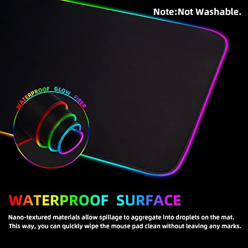 RGB Gaming Mouse Pad, Extra Large Gaming Mouse Mat for Gamer, Computer Keyboard Mat with 14 Lighting Mode, Waterproof Desk Pad for PC Gamer/Laptop Gamer/Office Description and features 【RGB Lighting Modes and Large Size】This large size advanced RGB gaming mouse pad is bright but doesn't obstruct the viewing of the monitor. 31.5x11.8 inch size is perfect for your mouse and keyboard and still has plenty of room to move.Designed special to help gamers win and win big. You will level up fast with this XL RGB mouse pad that delivers. 【Ultra Smooth & Top Quality】The RGB Gaming Mouse Pads design with superfine fiber braided material which are micro-textured, smooth surface, so the mouse could moves seamlessly across the pad and then the cursor follows the mouse precisely. The Non-slip Rubber Base keeps the gaming mouse pad griping the desktop firmly. It does Optimize your using experience. 【Amazing 14 Lighting Modes】Add an exciting professional light show and style mood to your gaming experience. Choose from totally 14 lighting modes, including single color modes, breath lighting modes, flash modes, wave modes,red, blue, green,purple ,yellow, sky blue,white... you can discover modes what you like.This takes RGB to a whole new level of beautiful and surprised. 【Plug & Play】This large gaming mouse pad is powered by USB, plug and play, no driver required. Just roll it on the desk and enjoy the genuine gaming experience coming with the RGB lighting effect.One button controls the light modes, press one time to change the lighting mode, press a long time to turn it off/on. In fact, it is a very nice addition to your computer desk or gaming desk setting.Comes with a USB power 1.8m cable for easy plug-and-play operation. 【Smooth And Waterproof Surface】Micro-textured cloth surface, for extremely precise mouse control and a smooth movement. When some tea/coffee/juice liquid splashes onto the game mouse pad,It can form water droplets and slide downwards, and can be easily wiped with water. Will not delay your work or gameplay. 【100% Satisfied Service】This RGB Gaming Mouse Pad is the best match for playing game. If you are not satisfied for any reason, simply return your mouse pad for a full , no questions asked.So you can buy it with confidence. If you have any concerns about this product, please us freely. Upgraded Mouse Pad Using a new 4mm thickness LED light guide strip, which is brighter and brighter than other mouse pads on the market and has a longer lifespan. Lighting Switch With double button control, it can switch off one button switch, or switch lights by clicking another button, simple and easy to operate. 14 Lighting Modes Red, Blue,Green, Purple, Cyan, Yellow, White, Alternating Wave, Synchronizing Wave, Alternating Flash, Alternating Color Changing Flash, Lights Off, Synchronous Breathing, Alternate Breathing. Oversized 31 inches X 11.8 inches has a large space to accommodate the mouse and keyboard, and there is extra space for you to place your mobile phone and water glass, etc. Return Policy ⦿ All our products come with a 30-Day Return Policy. If you would like to return your item and you are within 30 days of the purchase, and it is still in its original condition, you can return the item by contacting us through eBay messaging. ⦿ If you are not 100% satisfied, please let us know the Detailed Problem,We will give you a 100% satisfactory solution ⦿ If you received an incorrect, damaged, defective, or item not as described, contact us for a partial/full refund or replacement on our cost. ⦿ Free Shipping and Free Return 30-Days Money Back Guarantee. ☎ For all returned products, buyers MUST contact us for the returning address. Shipping ⦿ We do not ship to a different address. we will ship to the address you provide on the ebay only. Please check your address before purchase. ⦿ It should take 2-4 business days for the product to reach your destination. ⦿ If the product doesn't reach your destination within the time limit, please give it an additional 1-2 business days in case of postal delays and/or possible technical issues. ⦿ We use a selection of shipping services such as UPS, FedEx, USPS etc. ⦿ We ship only to the 48 contiguous states of America. We do not ship to Hawaii, Alaska, US Protectorates, APO/FPO addresses. Local pickups are not offered. ☎ If it takes any longer than that, please do not hesitate to contact us to resolve the issues. Contact us ☎ Please contact us via eBay message. And your message will be replied within 1 business days. For any queries, please feel free to contact us, we will get back to you as quickly as possible. Customer 100% satisfaction is our first priority and goal. We are always working hard for maintain high standards of excellence and resolve your problem in best way. So your POSITIVE FEEDBACK is very important. If you have any problem of the item, please feel free to let us know before leaving your feedback. We will try our best to solve your problem. About us We are here to give you quality products, competitive pricing and amazing service in order to make sure you get the best deal online, Thank you for your business and the opportunity to serve you.