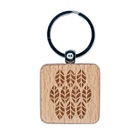 Leaf Pattern Engraved Wood Square Keychain Tag Charm