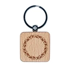 Leaves and Dots Round Border Engraved Wood Square Keychain Tag Charm
