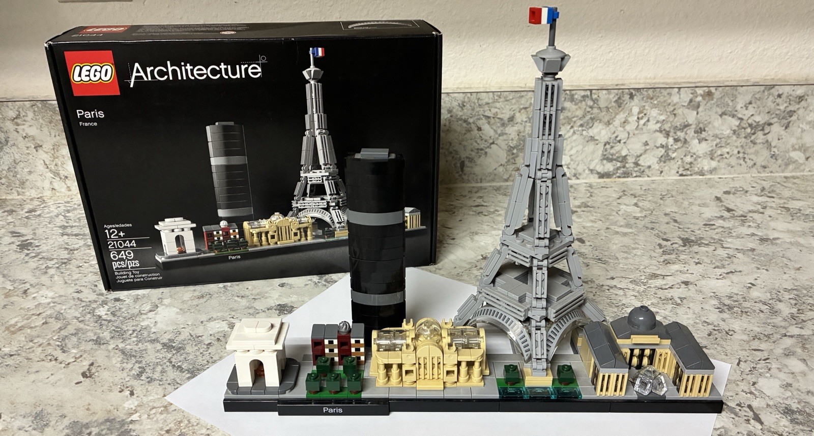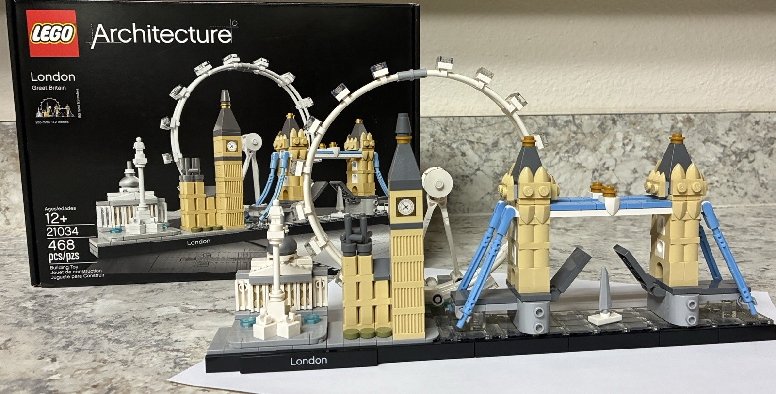 **IMPORTANT MESSAGE FOR BUYERS AT BOTTOM** London: Celebrate the architectural diversity of London with this detailed LEGO® brick model. The LEGO Architecture Skyline Collection offers models suitable for display in the home and office, and has been developed for all with an interest in travel, architectural culture, history and design. Each set is scaled to give an accurate representation of the comparative size of each structure, with true-to-life color depiction. This set features the National Gallery, Nelson’s Column, London Eye, Big Ben (the Elizabeth Tower) and Tower Bridge, and is finished with a decorative “London” nameplate. Paris: Bring together iconic Paris landmarks with this magnificent Paris skyline model. The 21044 LEGO® Architecture Skyline Collection set features the Arc de Triomphe, Champs-Elysées, Tour Montparnasse, Grand Palais, Eiffel Tower and the Louvre, and is finished with grass and tree areas and a decorative Paris nameplate. This set has been designed to deliver a rewarding and relaxing building experience to all with an interest in architecture, travel, history and design, and makes a truly “magnifique” centerpiece for the home or office. Each skyline model is scaled to give an accurate representation of the comparative size of the featured structures, with realistic color depiction. **ATTENTION BUYERS PLEASE READ** Each set comes with its instruction booklet and box. They are both currently assembled. If you would like them to be shipped assembled you must let me know when purchasing. Otherwise I will disassemble them in reverse order of the instructions recreating the numbered bag system for ease of assembly.