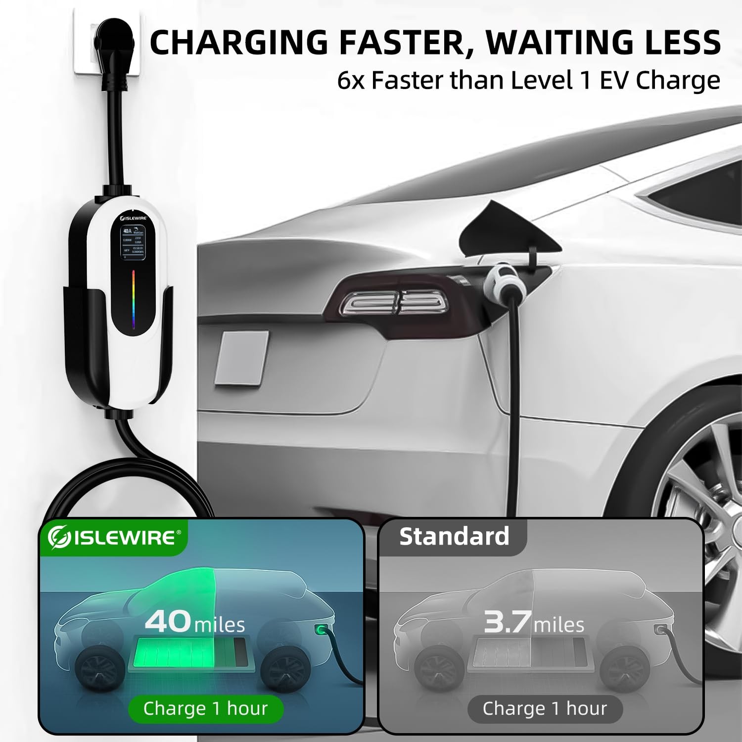 Level 2 EV Charger 40A 240V, 9.6kW Fast Charging with WiFi & APP Control, Plug-and-Play Portable EVSE, Adjustable Current & Delay Timer, 25FT Cable, NEMA 14-50 Plug, ETL Listed for All SAE J1772 EVs Product Features Universal & High-Speed Level 2 Charging: Compatible with all SAE J1772 electric and plug-in hybrid vehicles, this Level 2 EV charger (40A, 240V) delivers up to 9.6kW of power—almost six times faster than a standard Level 1 charger, adding up to 40 miles of range per hour. Spend less time waiting and more time driving. Whether for daily commutes or weekend trips, this portable ev fast charger keeps your vehicle powered for every journey. Smart APP & Touch Control for Adjustable Charging: This upgraded 40 amp smart ev charger offers flexible and intelligent control through both the touch panel and WiFi APP. Easily adjust the charging current (16A/24A/32A/40A) and set a 1–12 hour delay directly on the screen or from your phone. With smart APP control, you can remotely manage charging anytime, schedule sessions during off-peak hours to save energy, start or stop charging with a swipe, monitor real-time progress, review charging history, and customize current settings for optimal performance and battery protection. A truly level 2 ev charger with app designed for efficient, convenient, and flexible home or travel charging. Plug and Play & Long-Term Value: Just plug this Level 2 home EV charger into a NEMA 14-50 outlet—no installation or electrician needed. Built with NEMA Type 4/IP66 protection, this 240v 40 amp level 2 ev charger with nema 14-50 plug withstands dust and water for reliable use in garages, carports, and covered outdoor areas (avoid direct sunlight or heavy rain). The durable 25FT copper EV charging cord with a flexible TPU shell ensures long-lasting performance and easy storage. Enjoy reliable, efficient, and hassle-free charging anytime, anywhere. LCD & LED for At-a-Glance Charging: Stay fully informed with a real-time LCD display, showing voltage, current, temperature, and total power during charging. The dynamic LED indicator provides instant visual feedback on charging status. With clear, on-unit data and intuitive visuals, this portable level 2 ev charger nema 14-50 gives you full control and easy monitoring at any time. Enhanced Safety & Durability: Built for reliability, this level 2 ev charger 40 amp passes 10,000+ safety tests and features multiple protections including overvoltage, overcurrent, overheating, and short circuits. FCC and ETL certified with a water-resistant, flame-retardant housing, it ensures safe indoor and outdoor charging. Includes wall-mount base, cable hook, and storage bag-perfect as both a dependable home wall electric car charger and a portable EV chargers for all SAE J1772 vehicles for travel. Shipping: Shipping is complimentary within the lower 48 US States. We Do Not Ship to PO/APO Boxes, HI or Alaska We Do Not Ship Outside of the Continental US All items ship within 24-72 hours of Payment For large items that require Freight shipping a valid phone number is required to call and schedule your delivery Terms of Sale and Feedback: Feedback is extremely important to us and eBay If you are satisfied with our transaction, please take a moment to leave Positive Feedback. YOUR Satisfaction is our #1 Priority! If there are any issues, PLEASE contact us BEFORE leaving a neutral or negative rating so that we may resolve any concerns. We PROMISE we can make you happy if you give us a fair chance. Returns / Concerns: All items qualify for returns within 14 - 30 days of receipt. Buyer is responsible for return shipping on any item that is not damaged Please be sure this is an item you want before making your purchase. Customer Satisfaction is our TOP priority! All items are IN STOCK at time of listing. Inventory on eBay changes constantly and it is impossible to maintain a perfectly accurate count of all items. Please do not penalize us if we have to issue you a refund! Thank You For Your Business!