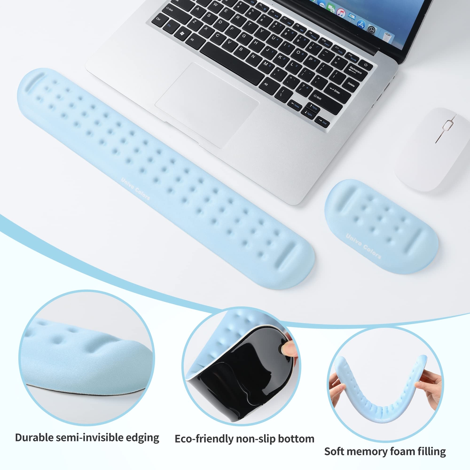 Light Blue Keyboard Wrist Support and Mouse Wrist Rest Set, Made of Memory Foam Soft Gel, Ergonomic Pad for Computer, Laptop, Mouse, Office, Gaming Light Blue Keyboard Wrist Support and Mouse Wrist Rest Set, Made of Memory Foam Soft Gel, Ergonomic Pad for Computer, Laptop, Mouse, Office, Gaming Product Overview Key Features [Improved Ergonomic Design]: keyboard rest and wrist rest set is made of premium Memory Foam fiber, which is resilient and not easy to deform. The soft, smooth and breathable technical surface material is gentle to the skin, without the abrasions and rashes that may appear on plastic and vinyl surfaces. The height and thickness of the upgraded version support your hands and wrists at the correct angle to reduce pain and fatigue caused by long-term repetitive movements. [Massage Beads Enhance Comfort]: This upgraded version of the wrist support has a new bumpy massage bead design, which fits the wrist , avoids prolonged use of stuffiness, and is more comfortable ordinary flat wrist rests. [Professional Size Production]: This wrist support set adopts the standard size recommended by experts to most people. Wrist rest: 5”(L)*2.8”(W)*0.8”(H) / 13cm(L)*7cm(W)*2cm(H). Keyboard rest: 17”(L)*2.8”(W)*0.8”(H) / 43cm(L)*7cm(W)*2cm(H). Sets Weight: 290 grams. [Slip-Resistant Bottom Design]: The non-slip base can firmly fix the mouse pad in place to prevent movement during use. Made of natural rubber, non-toxic and safe to use. [Exquisiteness In Every Detail]: The edge part adopts arc semi-invisible edging design and high temperature pressing. While maintaining the beauty of the edge seams, it also increases durability. Each color is classic and timeless. suitable for all kinds of people and all kinds of occasions. A great gift for yourself, family, colleagues or friends. Return Policy ⦿ Items can be returned within 30 days. Contact us through eBay messaging for return instructions. ⦿ We guarantee 100% satisfaction. Any issues will be resolved promptly. ⦿ Free shipping and returns with a 30-day money-back guarantee. ⦿ Please contact us for the return shipping address. Shipping Information ⦿ We ship to the address provided on eBay. Please ensure it is accurate. ⦿ Standard delivery time is 3-5 business days. ⦿ We use reputable shipping services such as UPS, FedEx, and USPS. ⦿ Currently, we ship only within the 48 contiguous states of the USA. ⦿ For any shipping concerns, feel free to contact us. Customer Support ⦿ For any inquiries, please contact us via eBay messaging. We typically respond within 24 hours. ⦿ Customer satisfaction is our top priority. ⦿ If you encounter any issues, please contact us before leaving feedback, and we will do our best to resolve them. About Us We are dedicated to providing high-quality products at competitive prices, ensuring that our customers receive the best value. Our team is committed to delivering exceptional customer service and a seamless shopping experience. With years of experience in the industry, we have established strong relationships with suppliers, enabling us to offer a diverse range of products. We continuously strive to expand our product selection and improve our services to exceed customer expectations. Our mission is to achieve 100% customer satisfaction by addressing any concerns promptly and effectively. Thank you for choosing our store. We look forward to serving you again and making your shopping experience delightful.