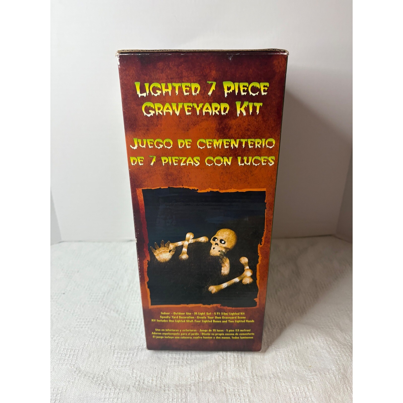 Conjure a spooky spectacle with this Lighted 7 Piece Graveyard Kit! This set transforms any space into a chilling graveyard scene, perfect for Halloween frights and eerie ambiance. The kit includes a lighted skull, four lighted bones, and two lighted hands, creating a complete and captivating display. Whether you're hosting a haunted house, decorating your front yard, or adding a touch of macabre to your indoor decor, this graveyard kit is sure to impress. Imagine the gasps and shivers as guests encounter this eerie scene, setting the perfect tone for a memorable Halloween celebration. This kit is ideal for Halloween parties, haunted houses, or adding a spooky touch to your home decor. Type: Props Occasion: Halloween Character Family: Graveyard Character: Skeleton, Skull, Bones, Hands Color: Multicolor Material: Plastic I