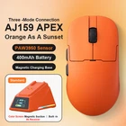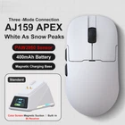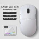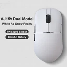Model Description: Please buyers read carefully before purchasing, if you have questions please contact our customer service! The following are the parameters of AJ159 , AJ159P , and AJ159PRO /AJ159APEX : Model:AJ159 Color :White As Snow Peaks Dual Mode: 2.4g Wireless+Wired Weight: About 56g Size: 118.1*63.1*37.7mm (suitable for small and medium-sized hands) Sensor: PAW3395 DPI: 26k Response Rate: Wired 1k+VVireless 1k Receiver: Standard 1k Small Receiver Battery: 400mAh Coating: Injection molding Model:AJ159 P Color: Black As A Meteorite and White As Snow Peaks Dual Mode: 2.4g Wireless+Wired Weight: About 56g Size: 118.1*63.1*37.7mm (suitable for small and medium-sized hands) Sensor: PAW3395 DPI: 26k Response Rate: Wired 1k+Wireless 1k Receiver: Standard 1k small receiver+magnetic seat charging Battery: 400mAh Coating: Injection molding Model:AJ159 PRO Color: Black As A Meteorite and White As Snow Peaks Three -Mode: 2.4g Wireless+Wired+Bluetooth Weight: About 56g Size: 118.1*63.1*37.7mm (suitable for small and medium-sized hands) Sensor: PAW3395 DPI: 26k Response Rate: Wired 1k+Wireless 8k Receiver: Standard magnetic suction seat charging(built -in 8k receiver) Battery: 400mAh Coating: Injection molding Model:AJ159 APEX Color: Black as ameteorite,Whiteas snow peaks,Orange as asunset, Blueas the sky Three -Mode: 2.4g Wireless+Wired+Bluetooth Weight: About 56g Size: 118.1*63.1*37.7mm (suitable for small and medium-sized hands) Sensor :PAW3950,APEX- Customization DPI: 30K,Overclocking Can Reach 42K Response Rate: Wired 1K+Wireless 8K Receiver: Standard the color screen magnetic suction built -in 8k receiver+support Gif moving map, time display, and tuning display. Battery: 400mAh