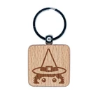 Llavero cuadrado de madera grabada de Halloween Peeking Witch dije etiqueta