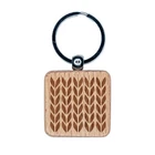 Llavero cuadrado de punto de punto grabado en madera con etiqueta