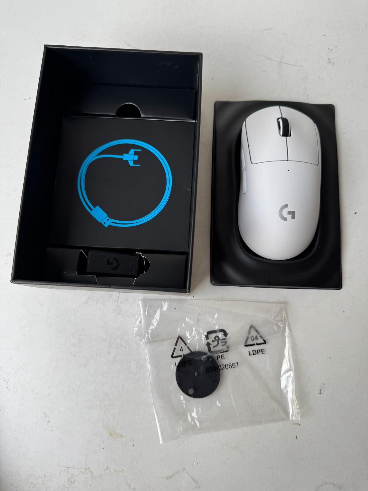 Logitech G Pro X SuperLight Wireless Gaming Mouse White 25,600 DPI Lightweight Description Logitech G Pro X SuperLight Wireless Gaming Mouse White 25,600 DPI Lightweight . Product Detail • Brand : Logitech • Model : Logitech G Pro X SuperLight • Color: White • Type : Gaming Mouse Please message me if you have any questions.