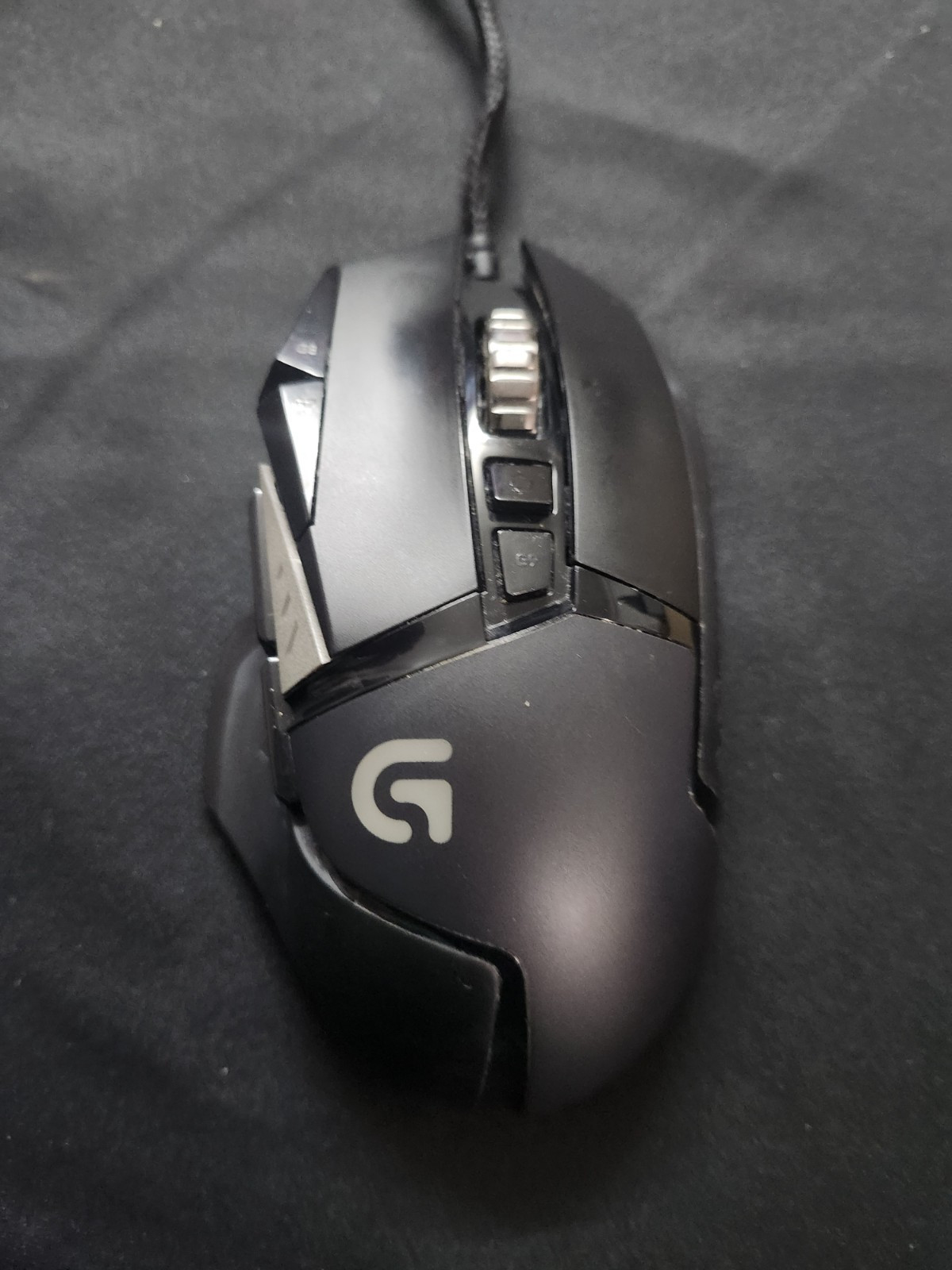 The Logitech G502 HERO is a black wired gaming mouse with a maximum DPI of 25600. It features programmable buttons, adjustable DPI, a scroll wheel, and adjustable weight. The mouse has a total of 10 buttons and uses optical tracking. The model is Logitech G502 HERO. This has been well used for a few years and then in a box for a few years. The mouse itself is fine with some cosmetic wear and tear. The wire casing is slightly scuffed, with part of the wire sticking out at one point. Product cleaned. No box or instructions.
