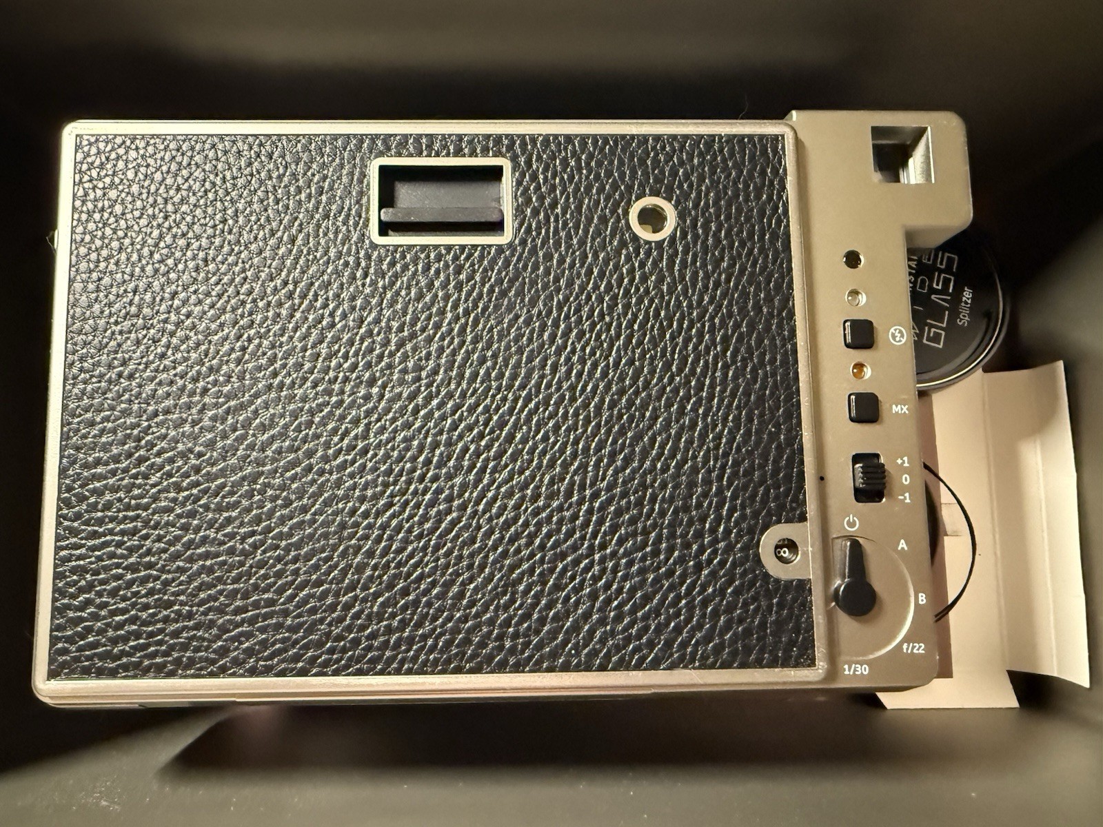 Lomo’Instant Wide Glass Black Camera. It has a glass lens, which provides better image quality than ordinary Lomo Wide camera It is compatible with Fujifilm Instax Wide film. I have tested it and it worked perfectly. It is an open-box item(almost no signs of use) and will come with all original accessories.